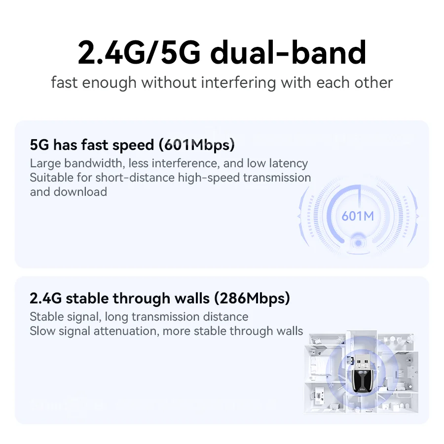 1) 900M BT5.4 y WIFI 6: Doble banda 2,4G y 5GHz, 900Mpbs, Bluetooth 5.4