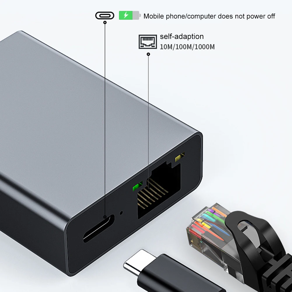 Cable de Internet tipo C a RJ45 de 1000Mbps, adaptador de red USB a Ethernet Plug and Play, compatible con carga PD para teléfono móvil/tableta