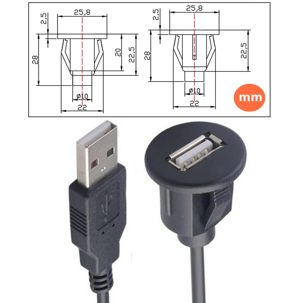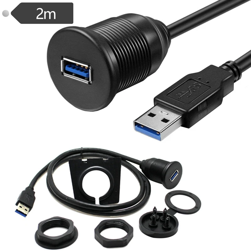 Comprar Adaptador de base USB de montaje empotrado para salpicadero de coche, Panel de tablero, Cable de extensión de Cable macho a hembra de 3,0 puertos para motocicleta y barco