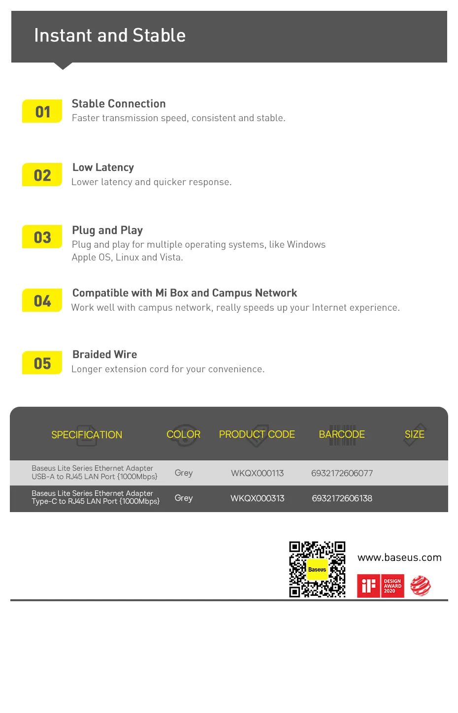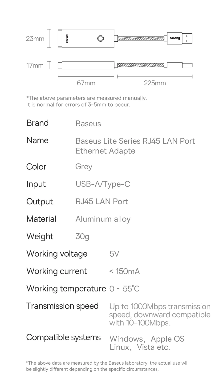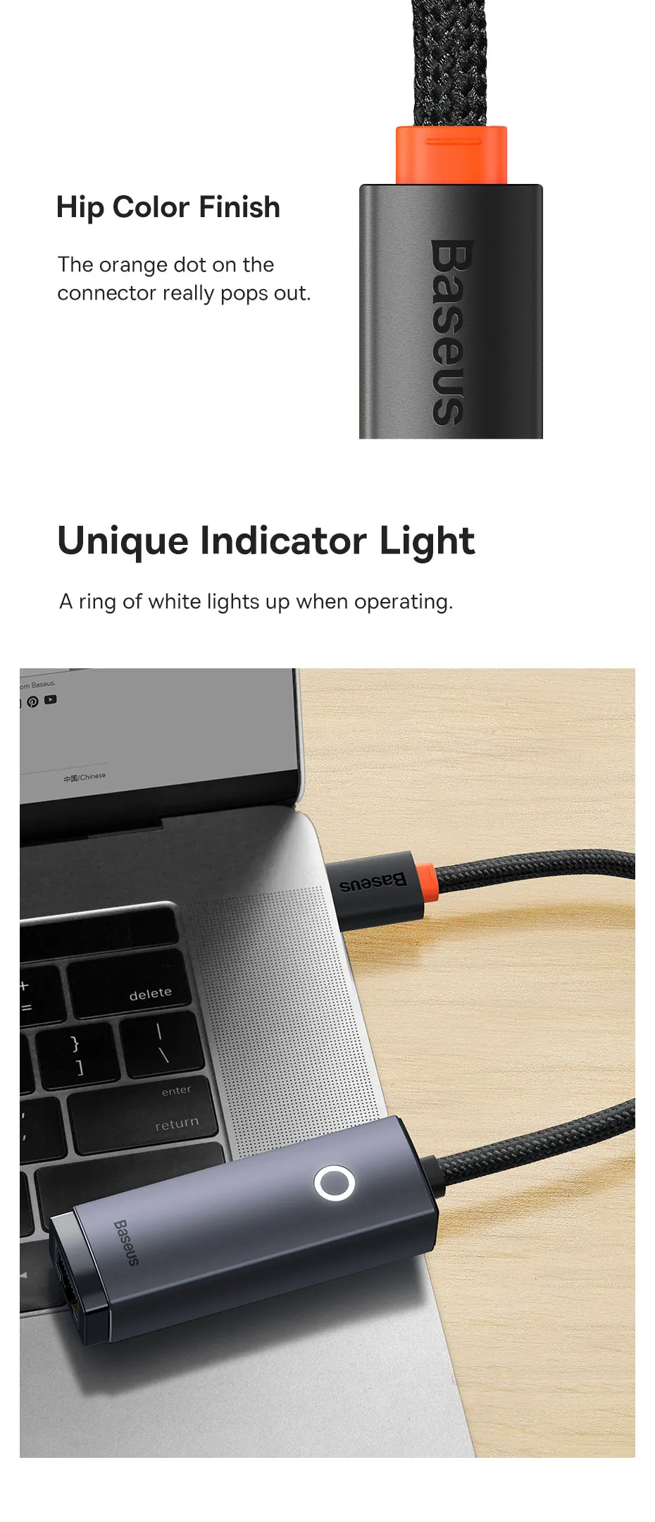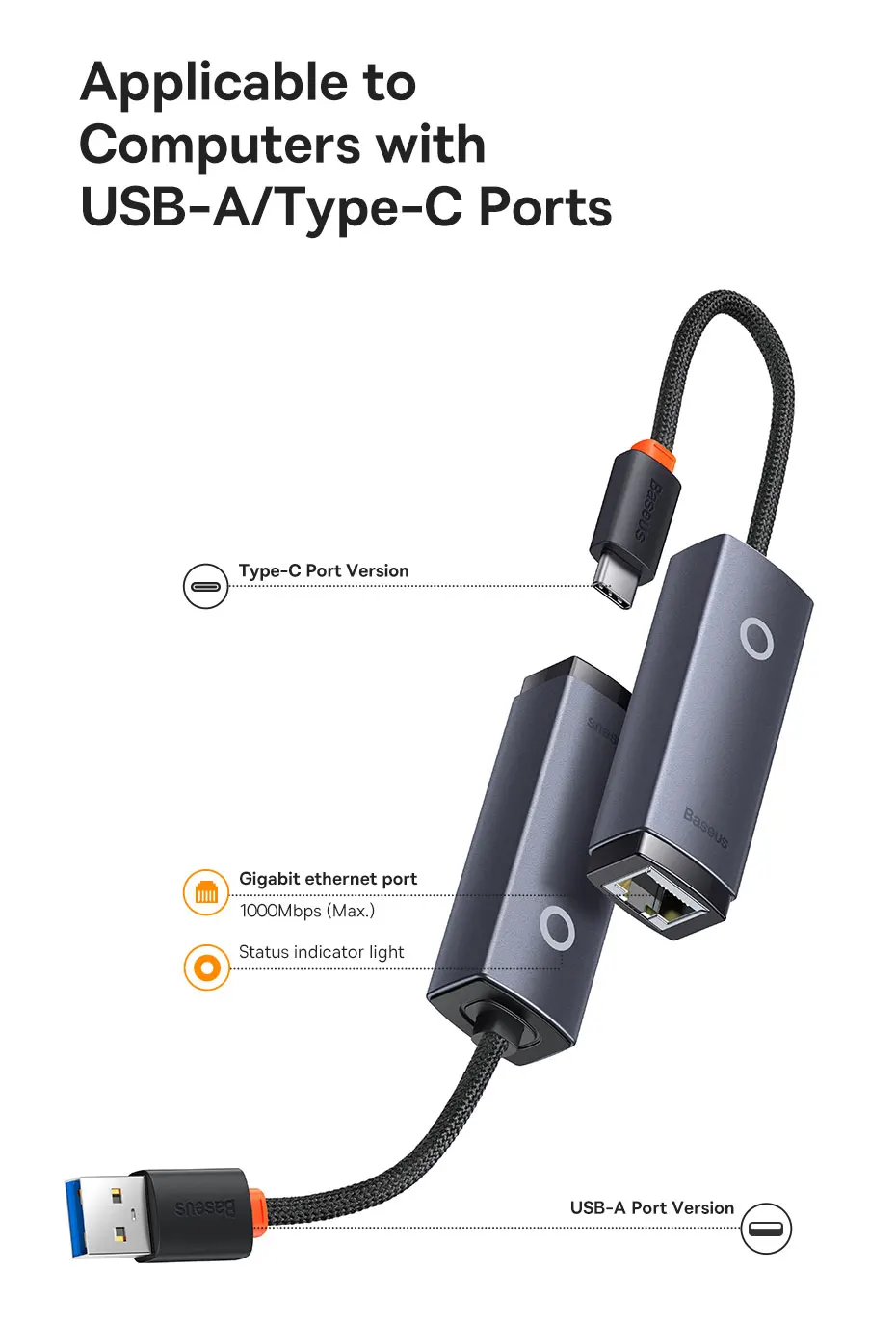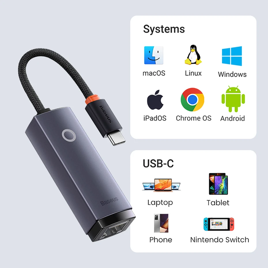 Comprar Adaptador Baseus USB C a Ethernet, adaptador USB C Gigabit de aluminio para ordenador portátil MacBook Pro 1000/100Mbps USB Lan RJ45, tarjeta de red