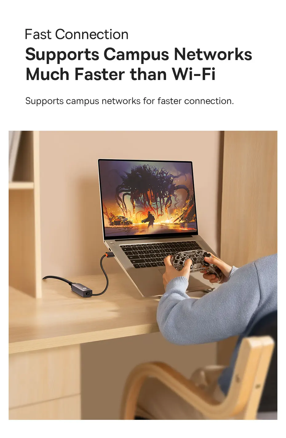 Puerto USB-A/Tipo-C a puerto LAN para red cableada y conexión estable.