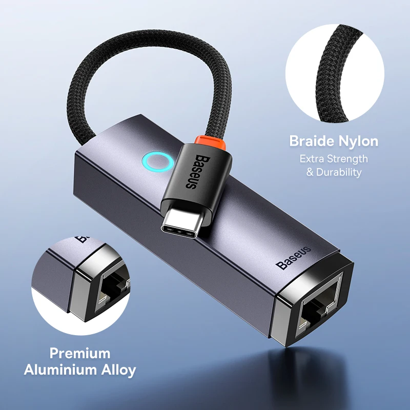 Comprar Adaptador Baseus USB C a Ethernet, adaptador USB C Gigabit de aluminio para ordenador portátil MacBook Pro 1000/100Mbps USB Lan RJ45, tarjeta de red