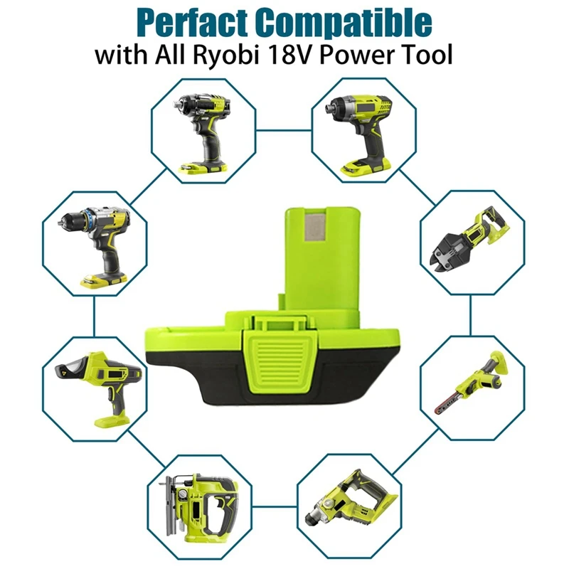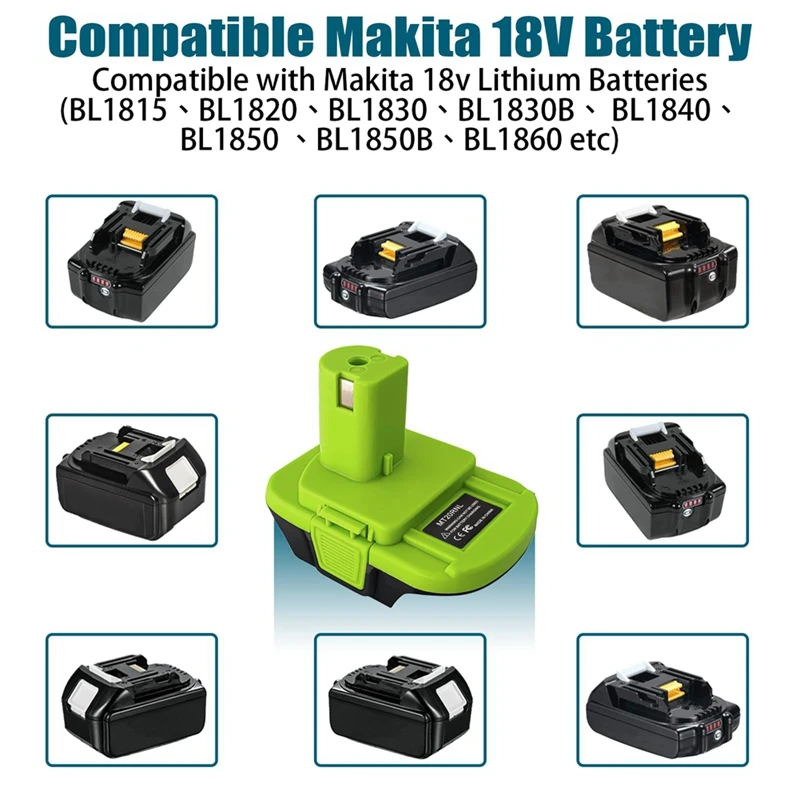 Compatible con herramientas Ryobi One+ de 18 V Serie P7131, P340, P208, P236, P601, P135, P515, P505, P731 etc.Convierta la batería Makita de 18 V Reemplace las baterías Ryobi P104 P105 P102 P103 P107 P108.