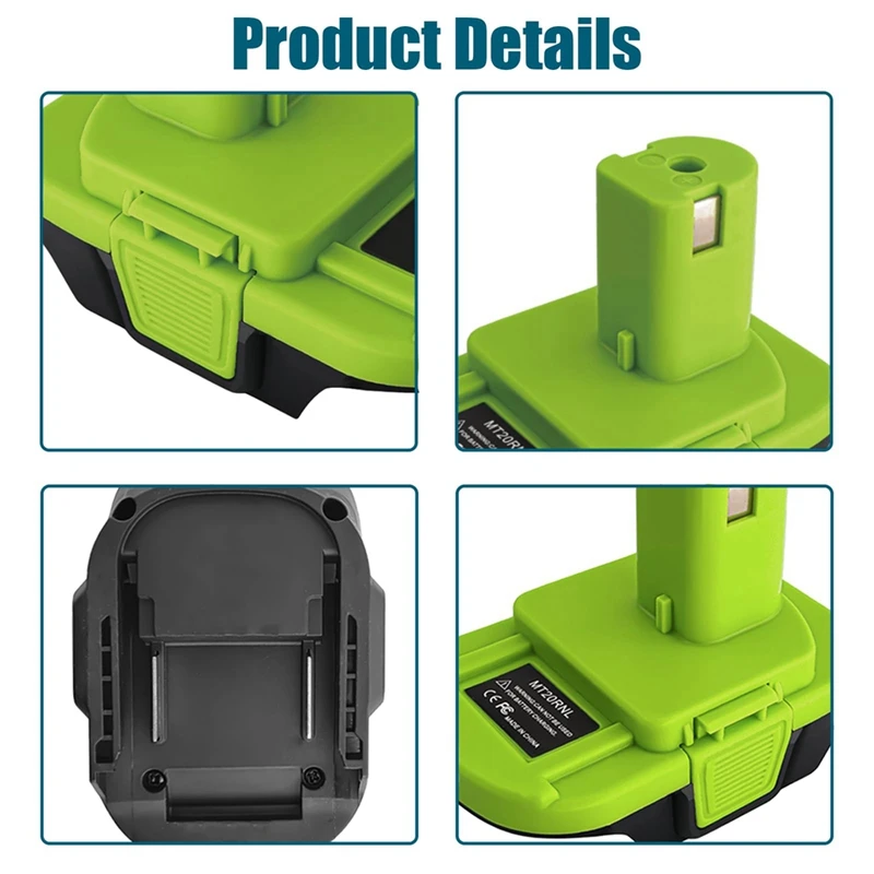 El adaptador de batería MT20RNL convierte las baterías de litio Makita de 18 V en baterías de litio Ryobi de 18 V One+ Plus, úselas para herramientas eléctricas inalámbricas de Ryobi de 18 voltios.Funciona muy bien como la batería de litio original Ryobi 18v One+, igual que la función y la compatibilidad.Y le permite disfrutar de los beneficios del tiempo de funcionamiento prolongado de las baterías de iones de litio en las herramientas de 18 V existentes.