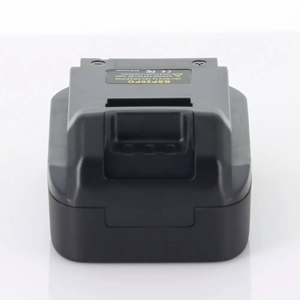 Este adaptador de batería está Hecho principalmente de ABS ignífugo, que es anticorrosivo y seguro de usar. El voltaje máximo inicial de la batería (medido sin carga de trabajo) es de 20 voltios, el voltaje nominal es de 18 voltios.