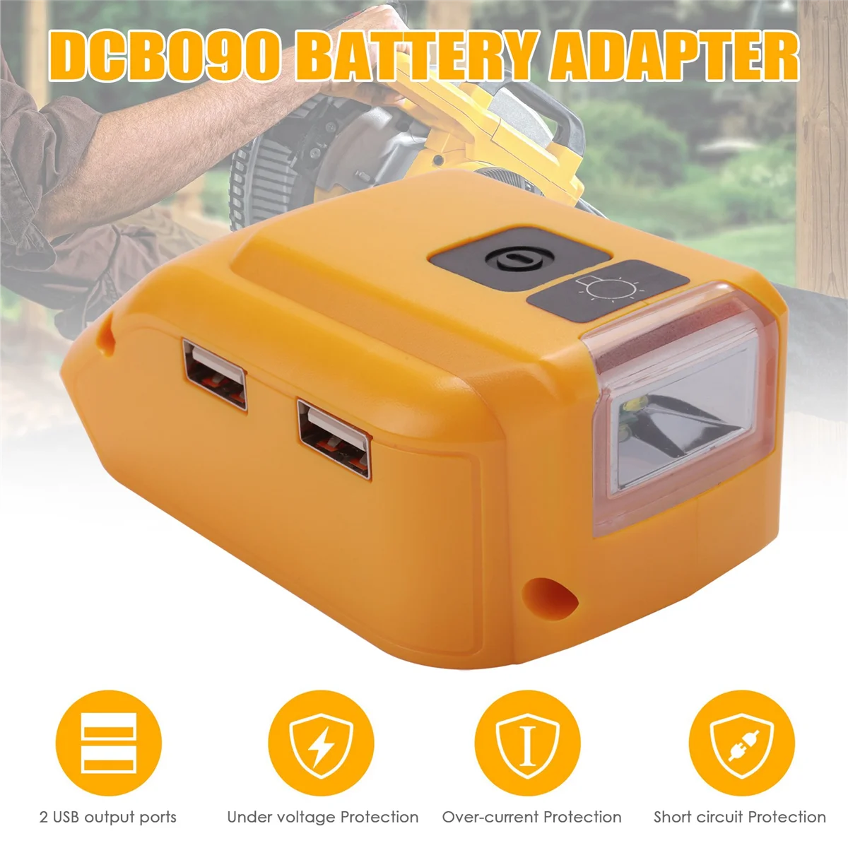 Comprar Adaptador de batería DCB090, convertidor de cargador de fuente de alimentación para batería de litio DeWalt 18V 20V Max con puerto DC
