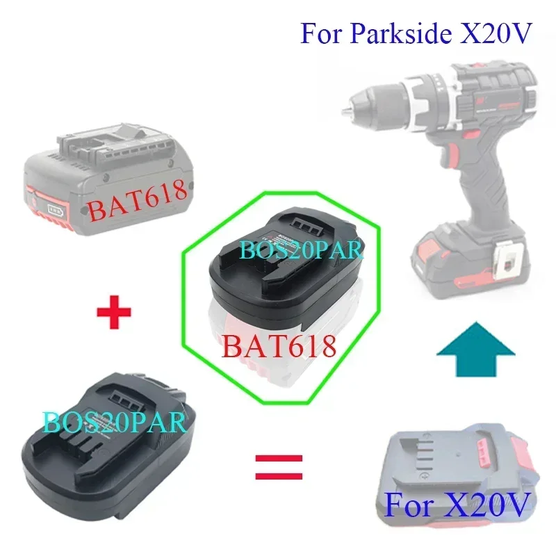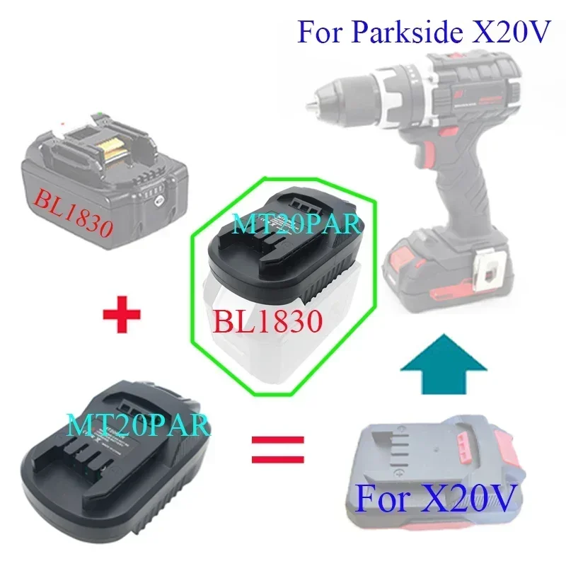Adaptador de batería para herramientas Parkside X20V DM20PAR BOS20PAR MT20PAR Compatible con baterías Makita/Bosch/Milwaukee/DeWalt 18V/20V