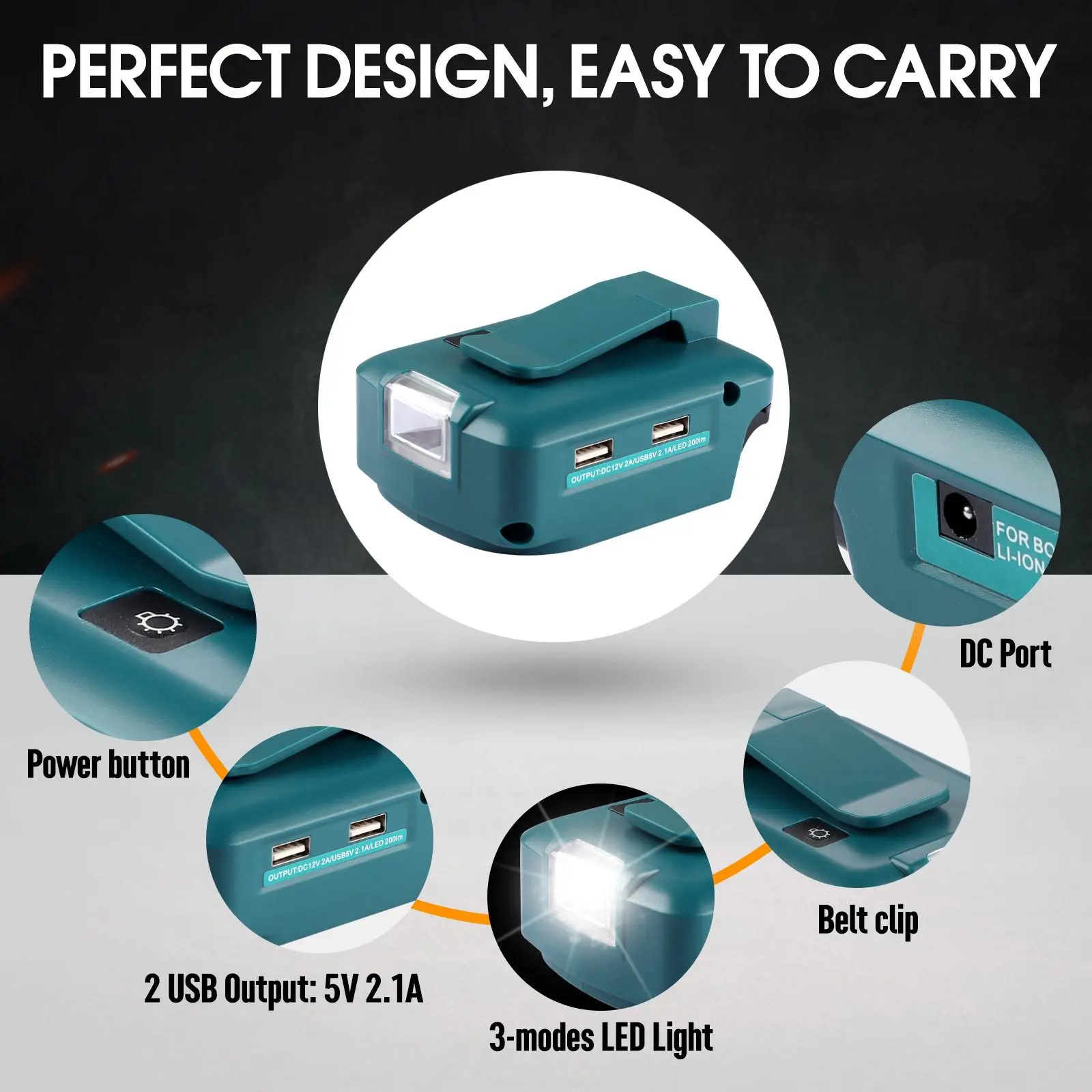 Debido a la diferencia entre monitores, es posible que la imagen no refleje el color real del producto. ¡Gracias!El paquete incluye:Comprar Adaptador de batería para Makita, Milwaukee, Bosch, DeWalt 14,4 V/18V, herramienta eléctrica, USB Dual para Makita con luz LED