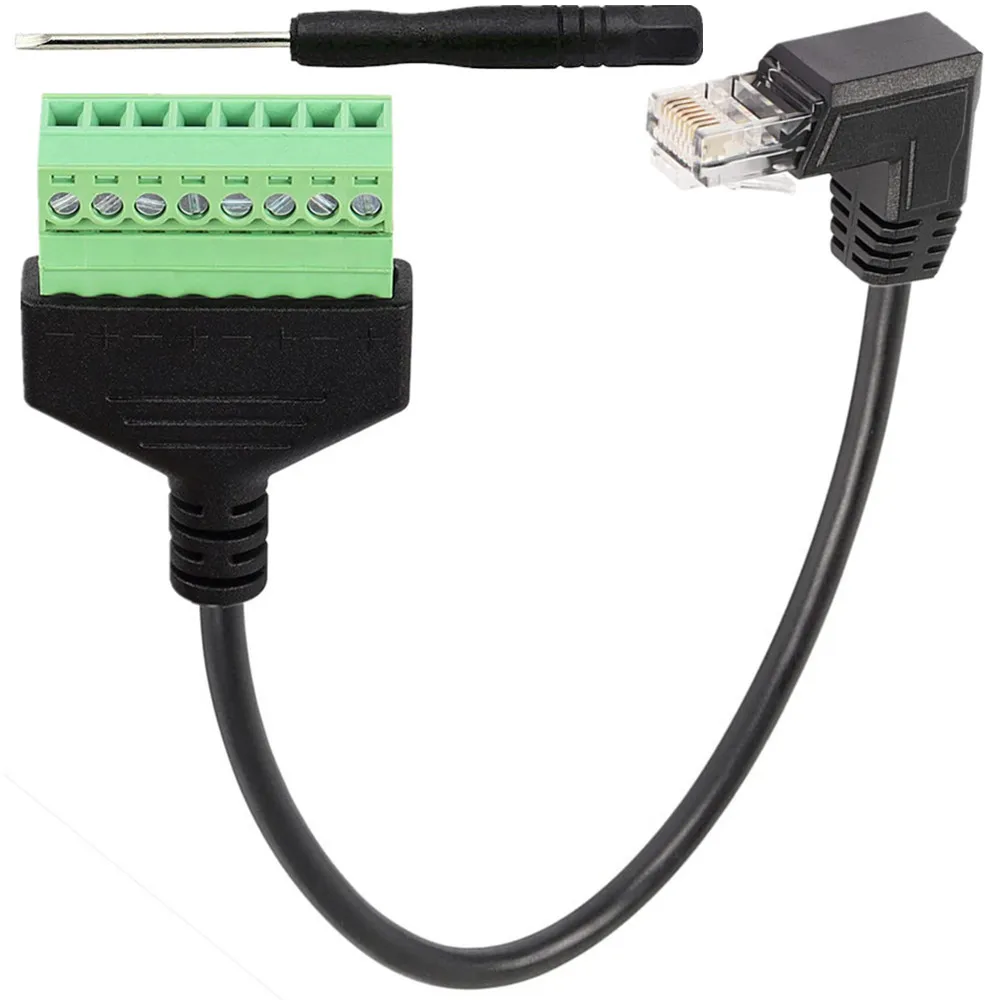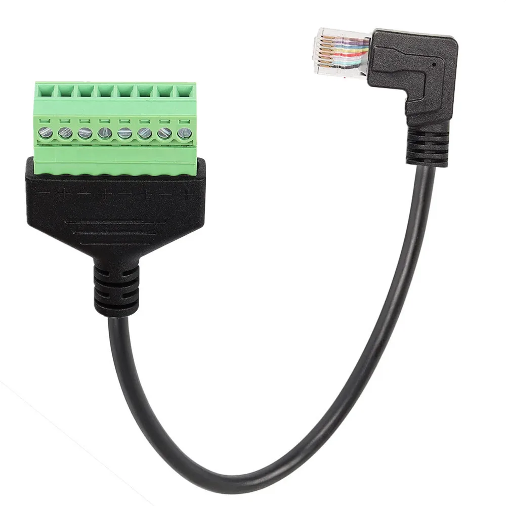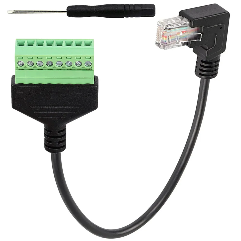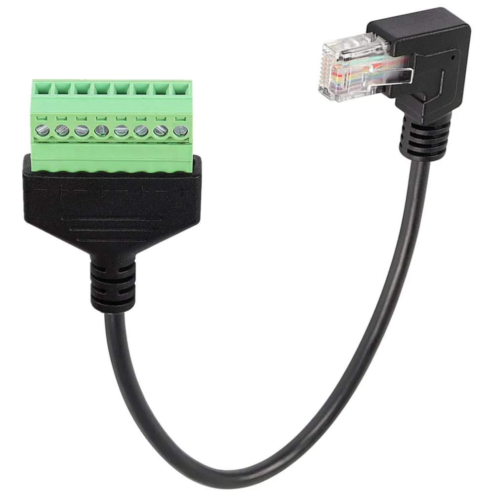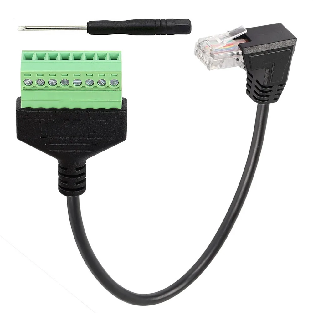 Adaptador de bloque de terminales de tornillo de 90 ángulos RJ45 macho a 8 pines para extensor Ethernet Cat7 Cat6 Cat5 CCTV Internet Digital, enchufe macho RJ45 a cable conector Ethernet de terminal de 8 pines 0,3 m