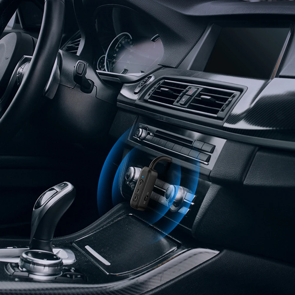 2.Llamadas manos libres:Los kits de manos libres para automóvil cuentan con un micrófono incorporado que le permite disfrutar de llamadas manos libres directamente a través de los parlantes de su automóvil.Este adaptador de audio Compatible con Bluetooth también admite notificaciones de voz de aplicaciones de navegación existentes, lo que garantiza una conducción más segura y cómoda sin la necesidad de captar su teléfono.