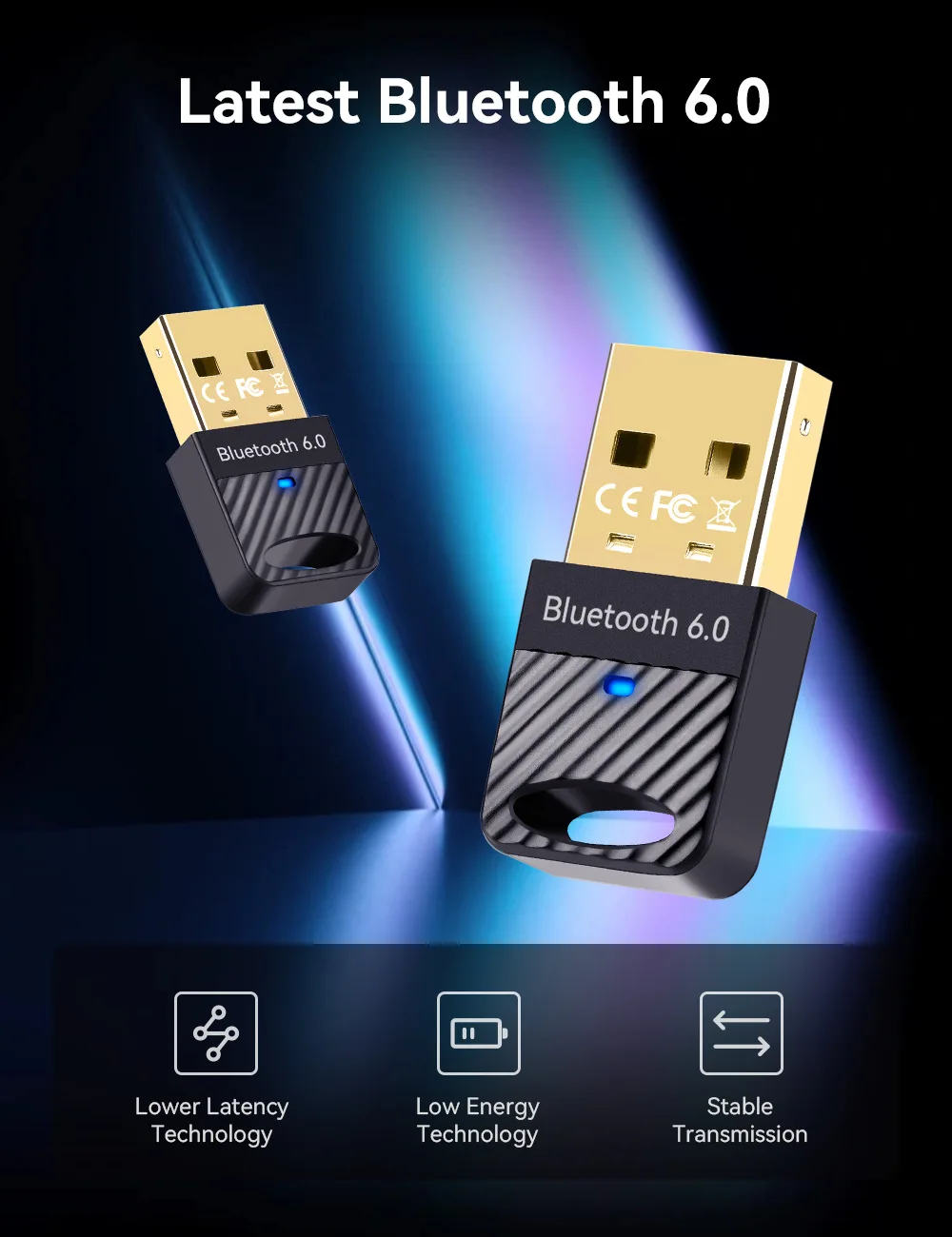Adaptador Bluetooth 6,0 para Pc Usb Bluetooth 6,0 Dongle receptor para altavoz ratón teclado música Audio transmisor Bluetooth