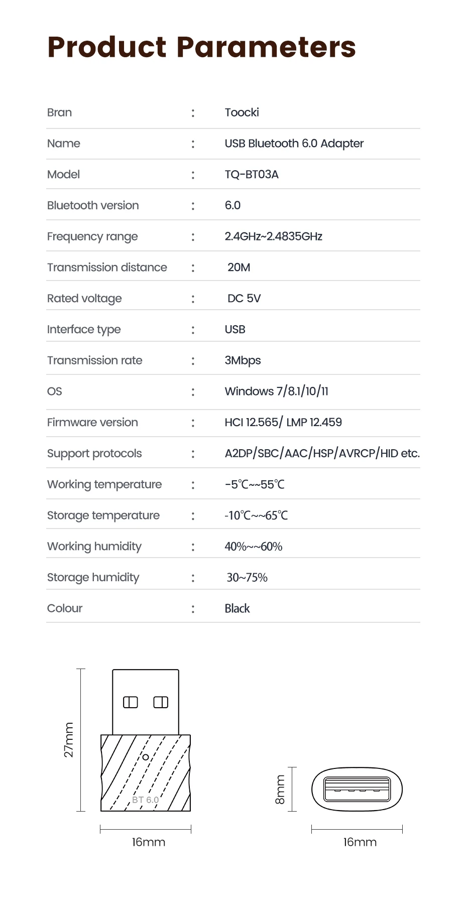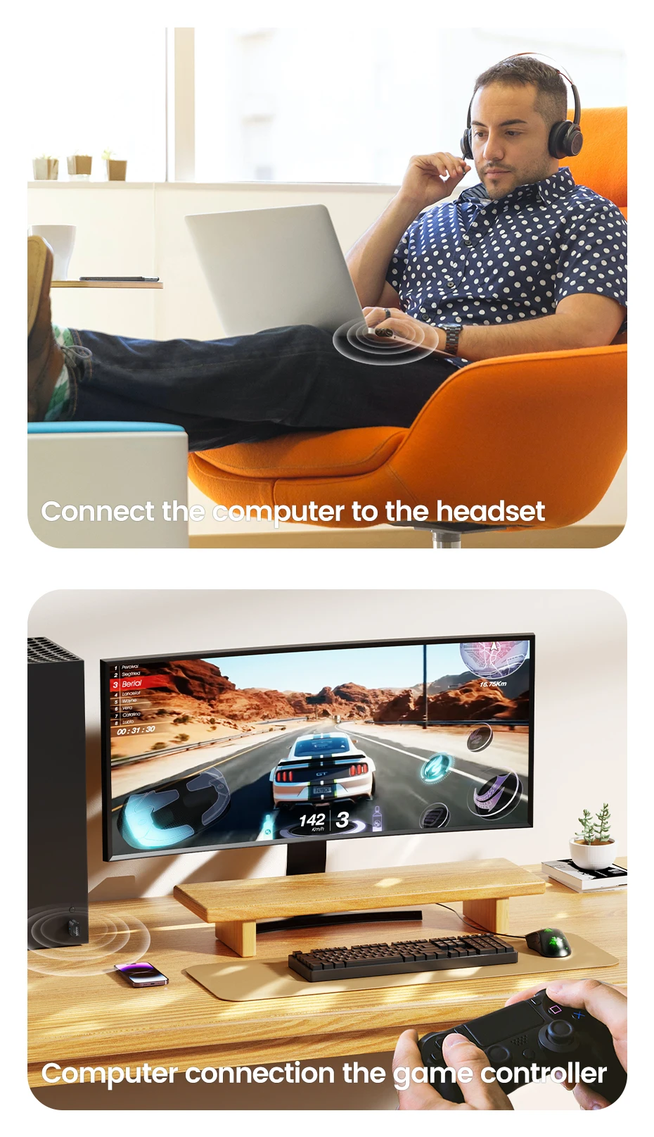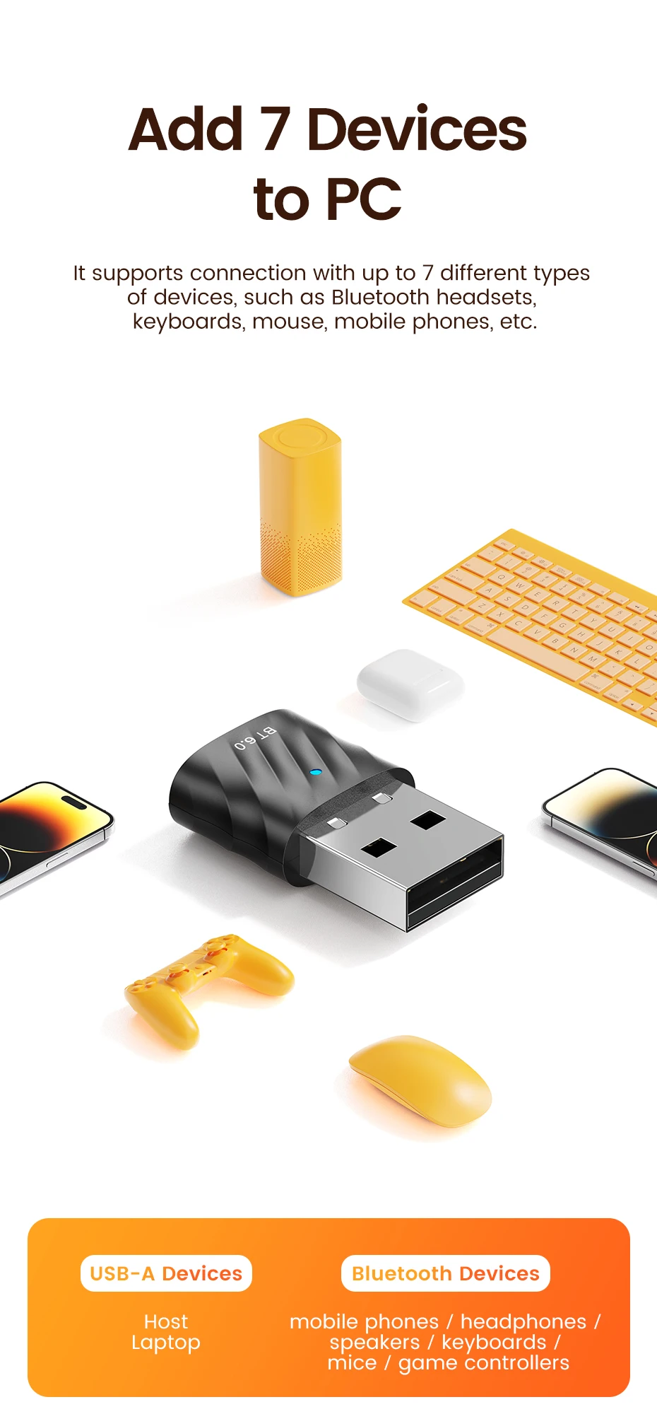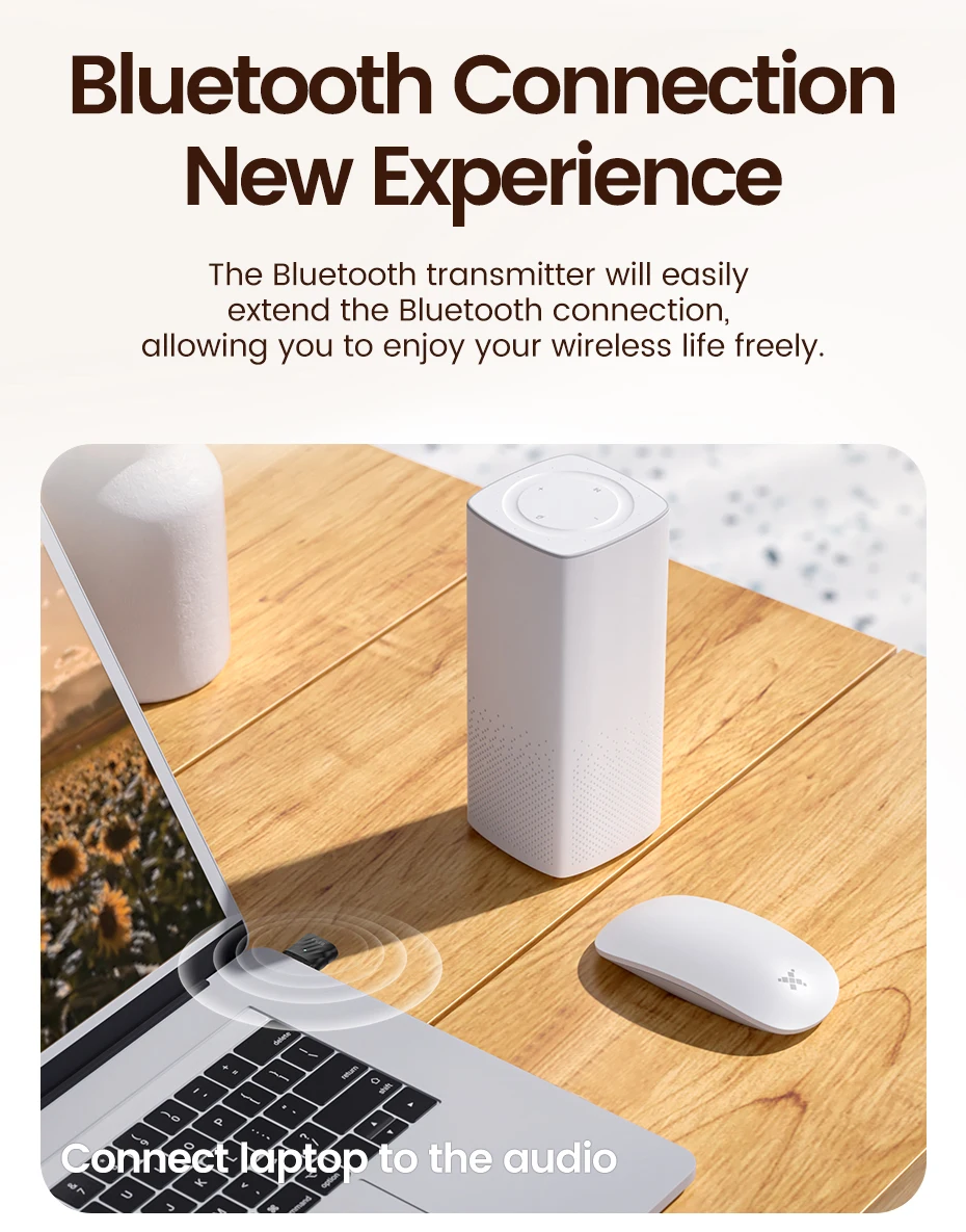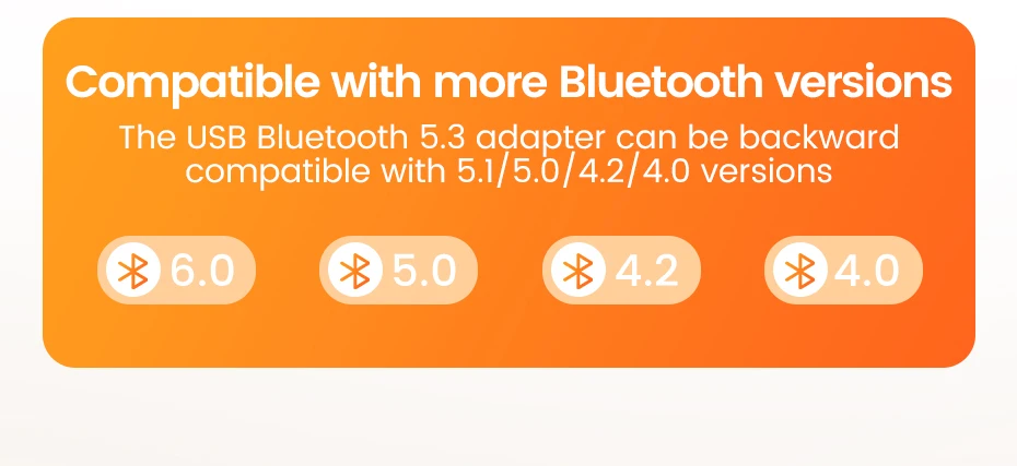 El adaptador USB Bluetooth 6.0 es compatible con versiones anteriores de las versiones 5.4/5.3/5.1/5.0/4.2/4.0, ampliando su gama de aplicaciones.