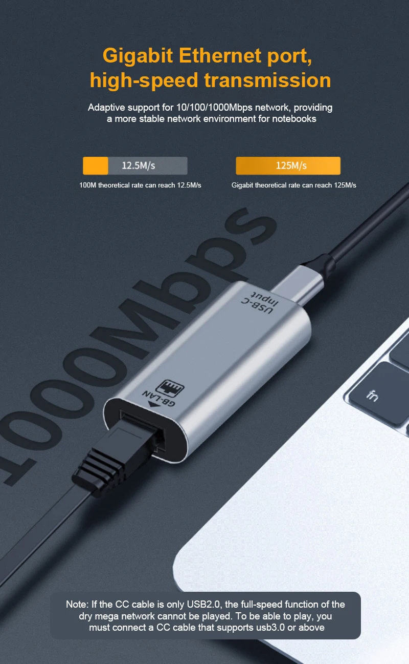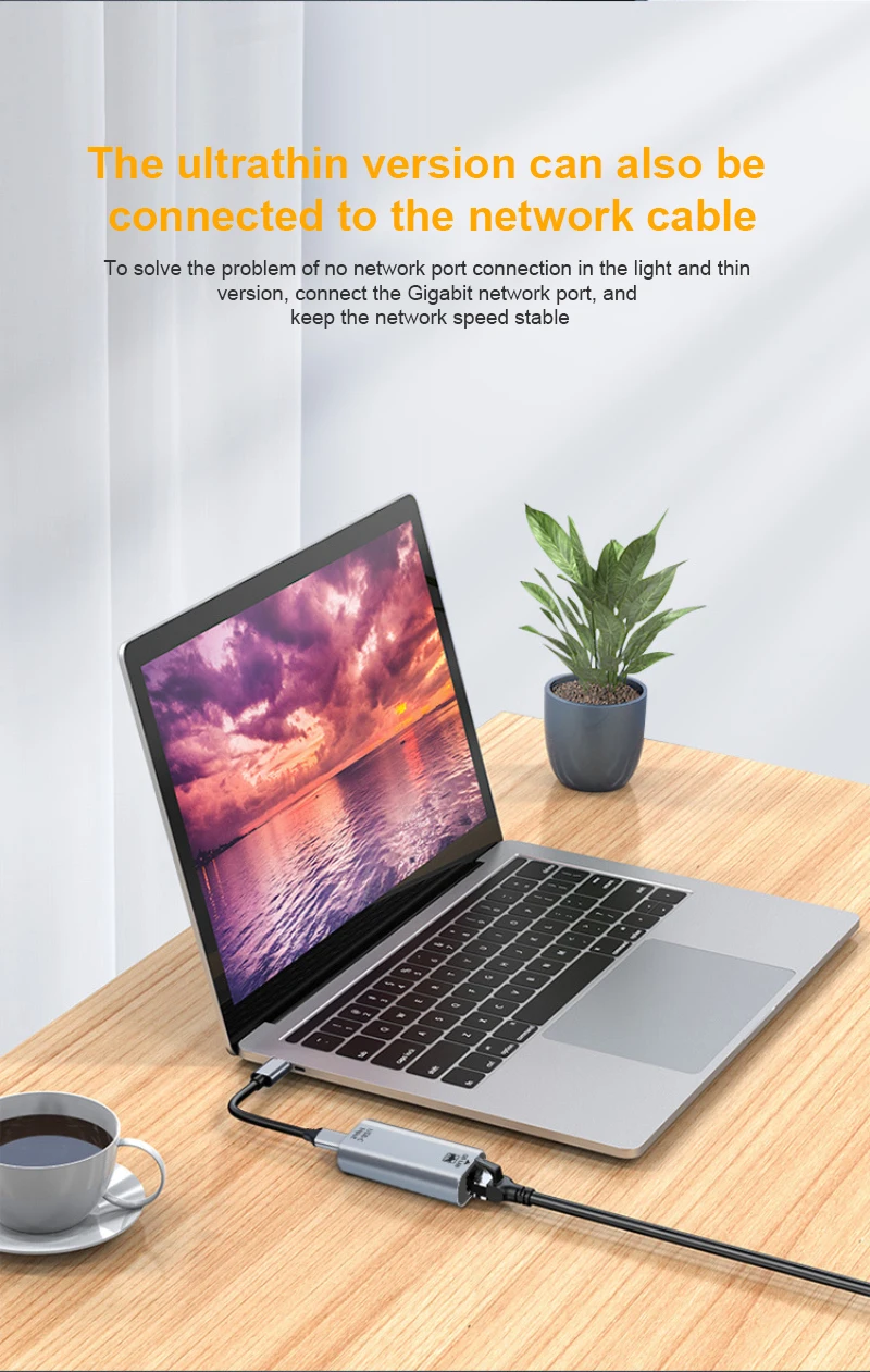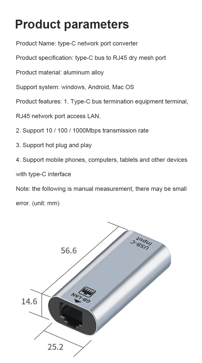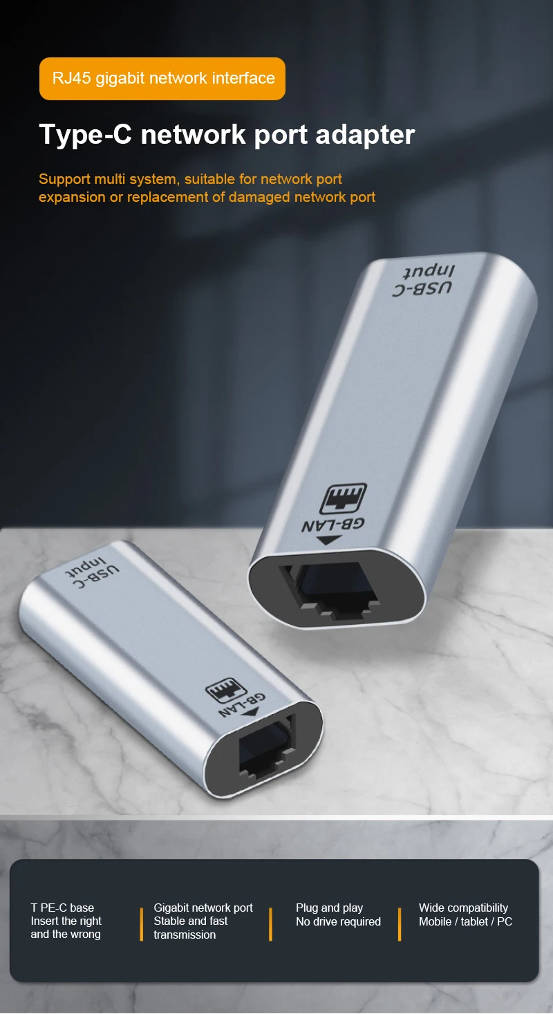 Comprar Adaptador C hembra a RJ45 hembra USB tipo C a Ethernet, 10/100/1000 Gigabit, tarjeta de red LAN con cable para PC, portátil y teléfono inteligente