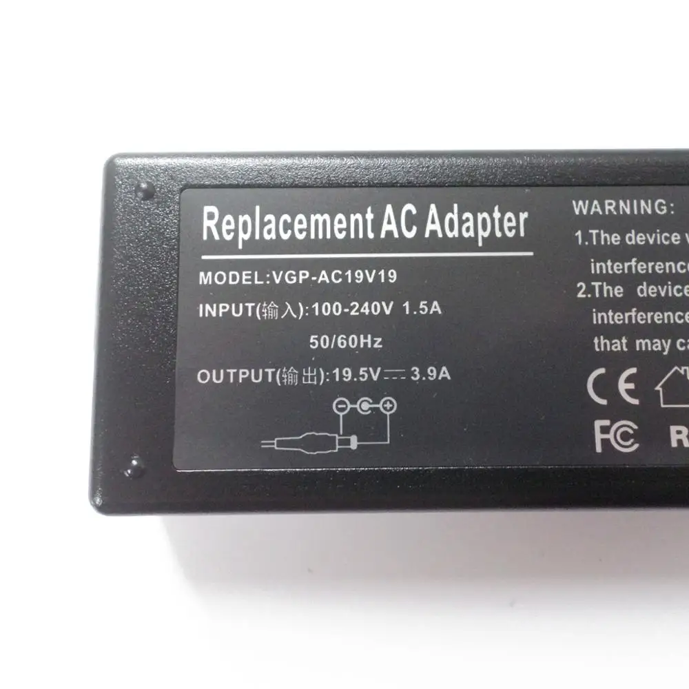 Comprar Adaptador de CA para ordenador portátil SONY, fuente de alimentación de 19,5 V, 3.9A, PCG-61212T/71212T, VGN-NR498E, NR, P, SVE1511RFXW, cable cargador de VGP-AC19V37