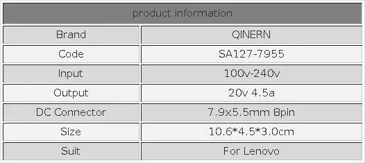 Artículo: 90W 20V 4.5A Adaptador de corriente para computadora portátil