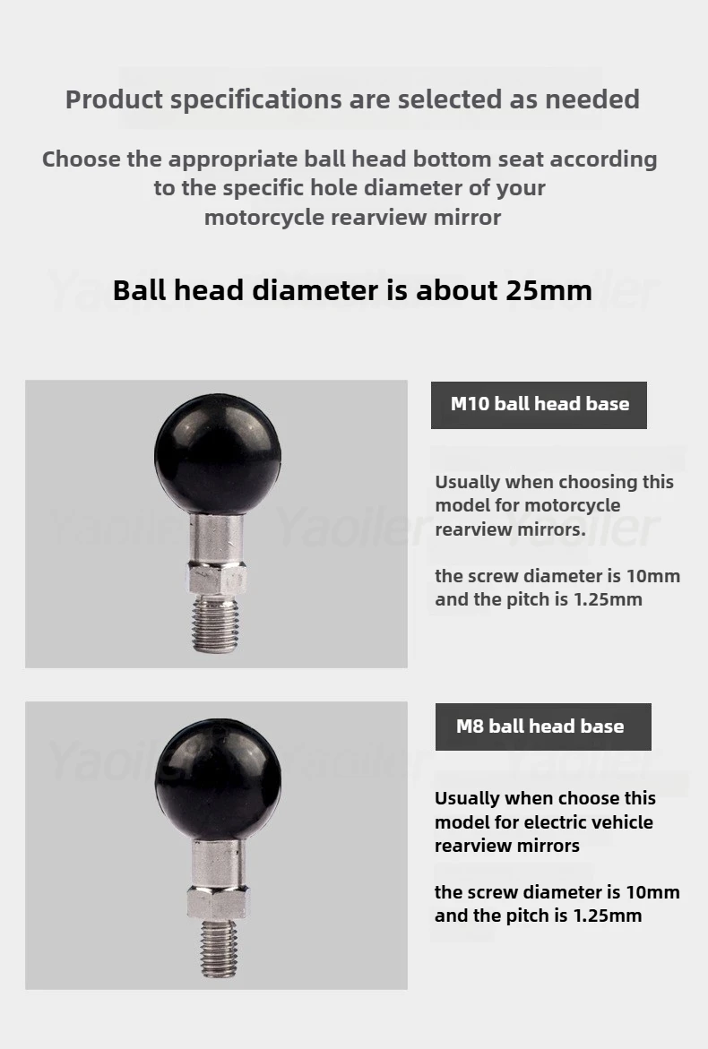 Adaptador de rótula de bola de 1 pulgada, soporte para teléfono de motocicleta con cabezal de bola roscado M10 M8 M6 1/4"-20 de 1" para soporte de cámara DJI GoPro