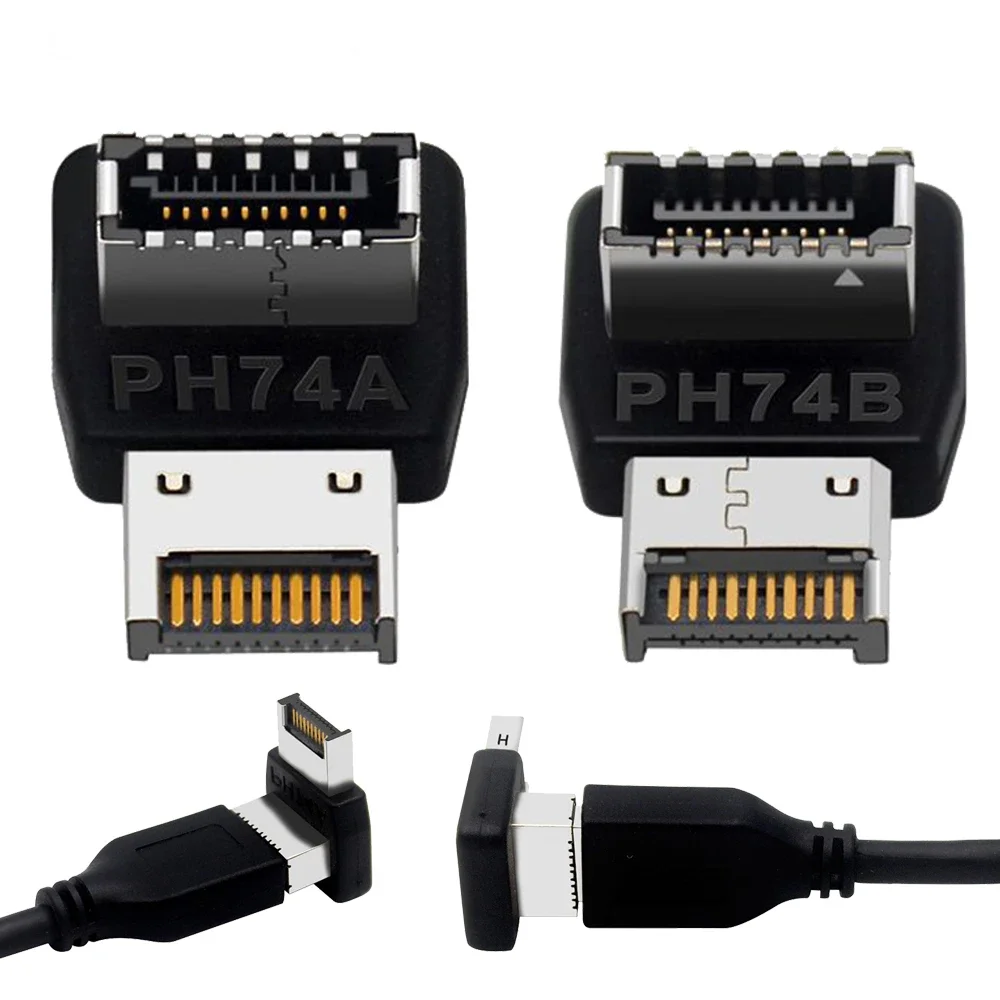 Adaptador de encabezado interno USB tipo C frontal con carcasa USB 3,1 tipo E convertidor de 90 grados para conector de placa base de computadora