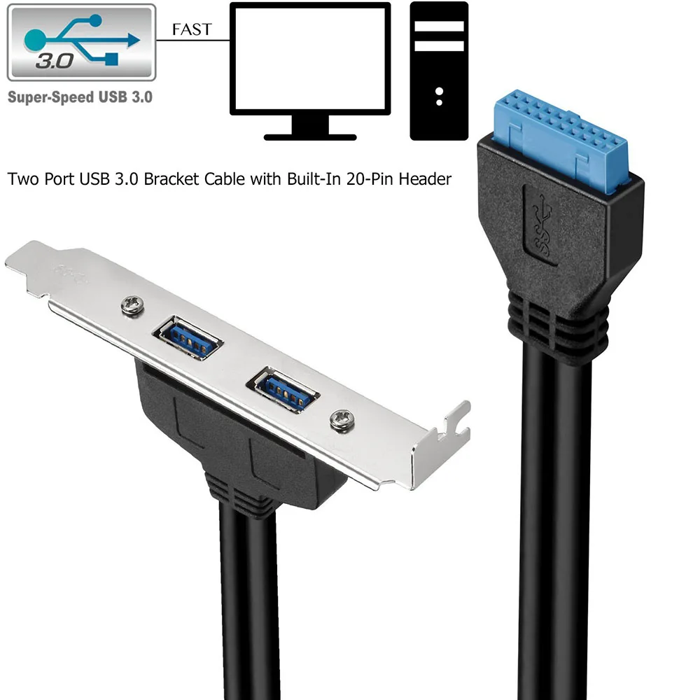 Soporte de expansión del panel trasero USB 3,0 a cable de cabecera de 20 pines (2 puertos)