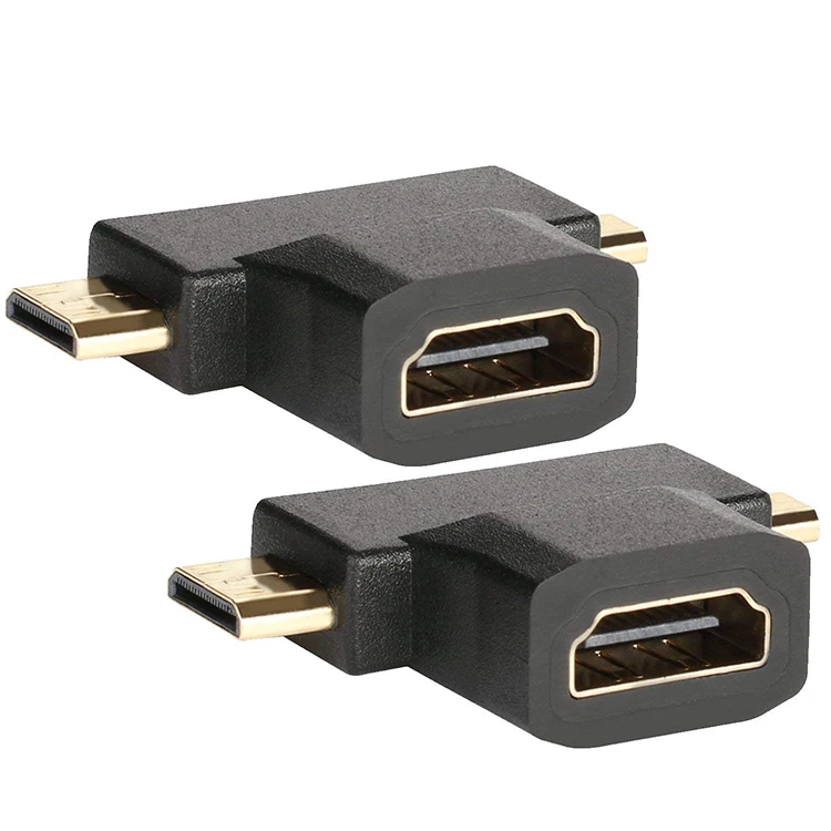 Comprar Adaptador de cable 3 en 1 de HDM1-compatible a Micro HDM1-compatible, convertidor en forma de T, macho, Mini HDM1-compatible, hembra 1,4, 1080P