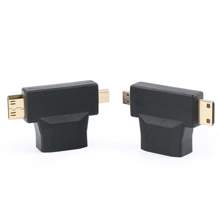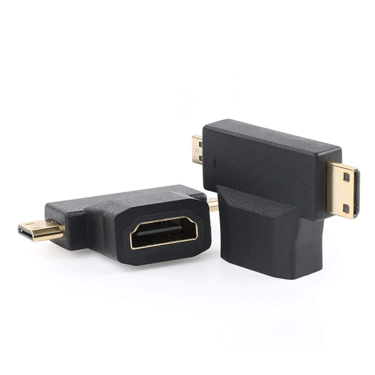 Comprar Adaptador de cable 3 en 1 de HDM1-compatible a Micro HDM1-compatible, convertidor en forma de T, macho, Mini HDM1-compatible, hembra 1,4, 1080P