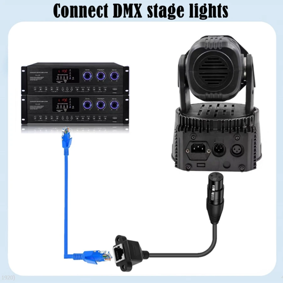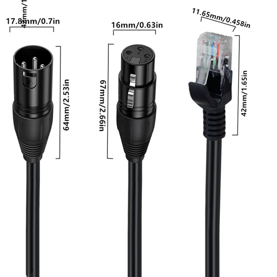 XLR macho/hembra de 3 pines a RJ45 hembra con cable de conexión de orificio fijo, puede extender y transmitir señales, adecuado para amplificadores, amplificadores, consolas de mezclas, KTV, equipos de música, serie de controladores DMX-CON para tiras de luz LED RGB, utilizado para convertir Ethernet cables de conexión a cables de conexión DMX512.