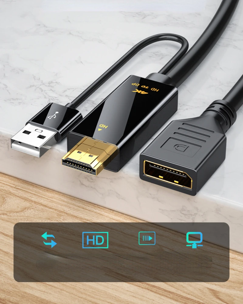 Adaptador de Cable 4K 60Hz HDMI Compatible con DP Displayport con puerto de fuente de alimentación USB, para PC, ordenador de escritorio/portátil, Monitor