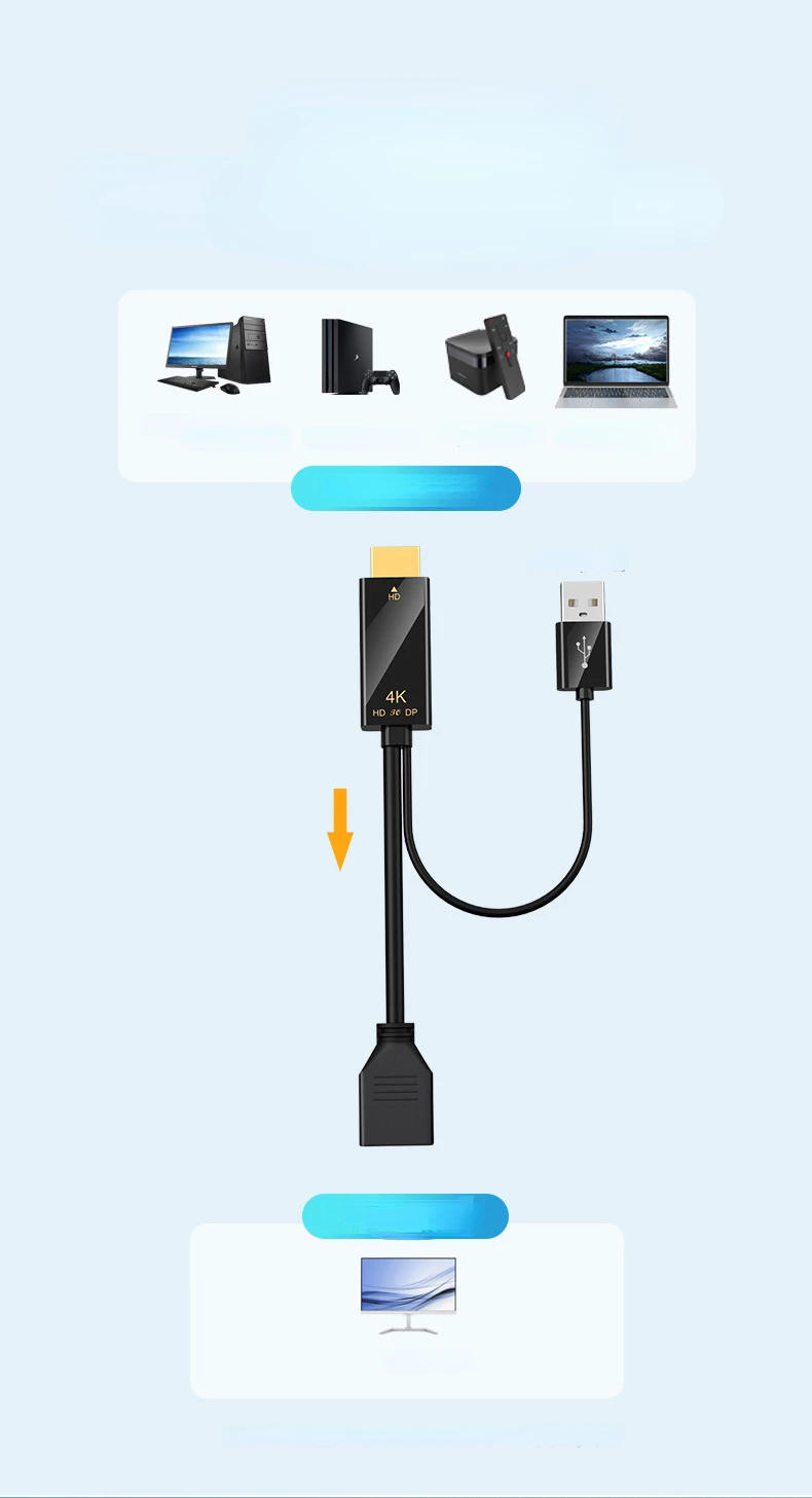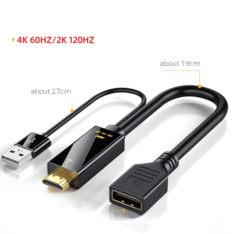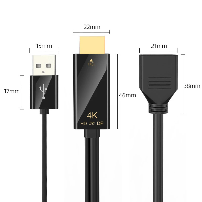 19cm HDMI-Compatible con DP Displayport 4K 60Hz Adaptador de cable con puerto de fuente de alimentación USB, para PC Computadora de escritorio/computadora portátil, Monitor