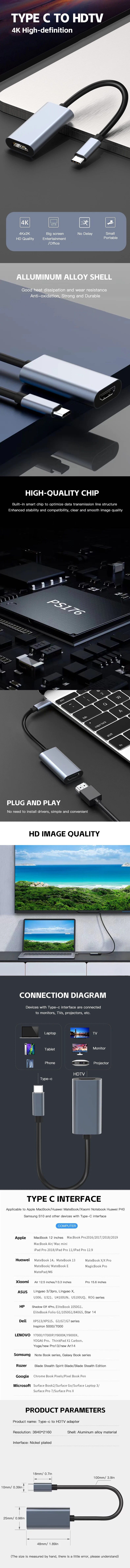 - Adecuado para computadoras portátiles con puertos USB 3.1 (TYPE-C) para transferir vídeos sincrónicamente a pantallas de puerto HDTV.