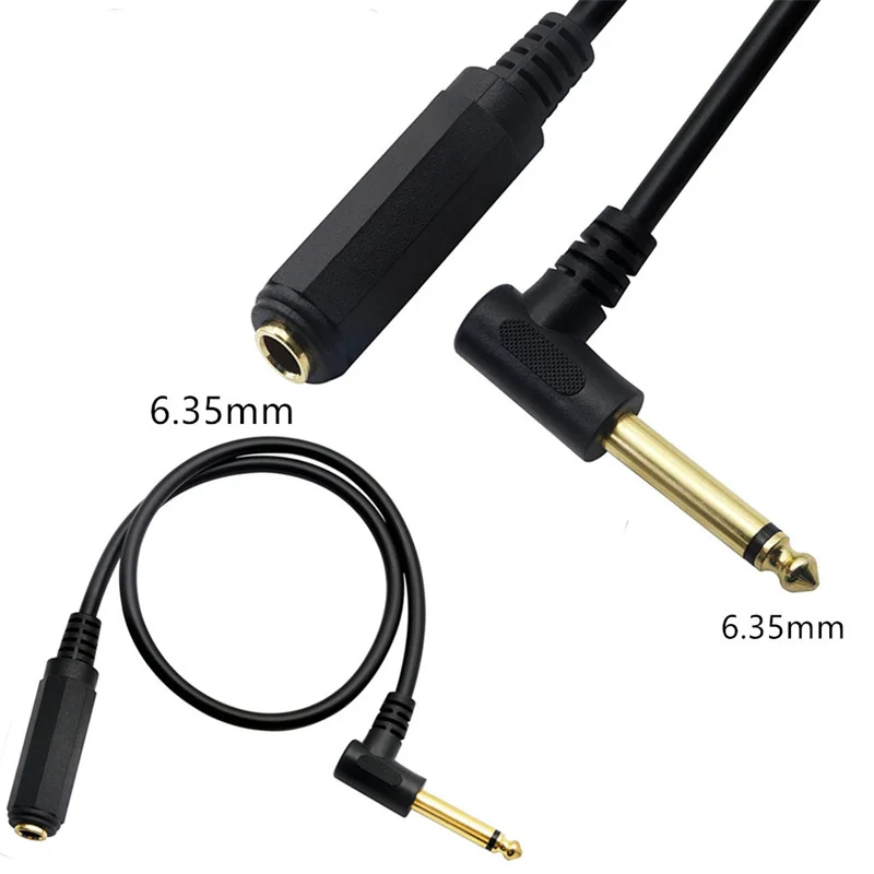 Mono canal ángulo recto 6,35mm macho a 6,35mm hembra Jack enchufe 50CM extensión Audio Cable adaptador para altavoces micrófono Mezclador