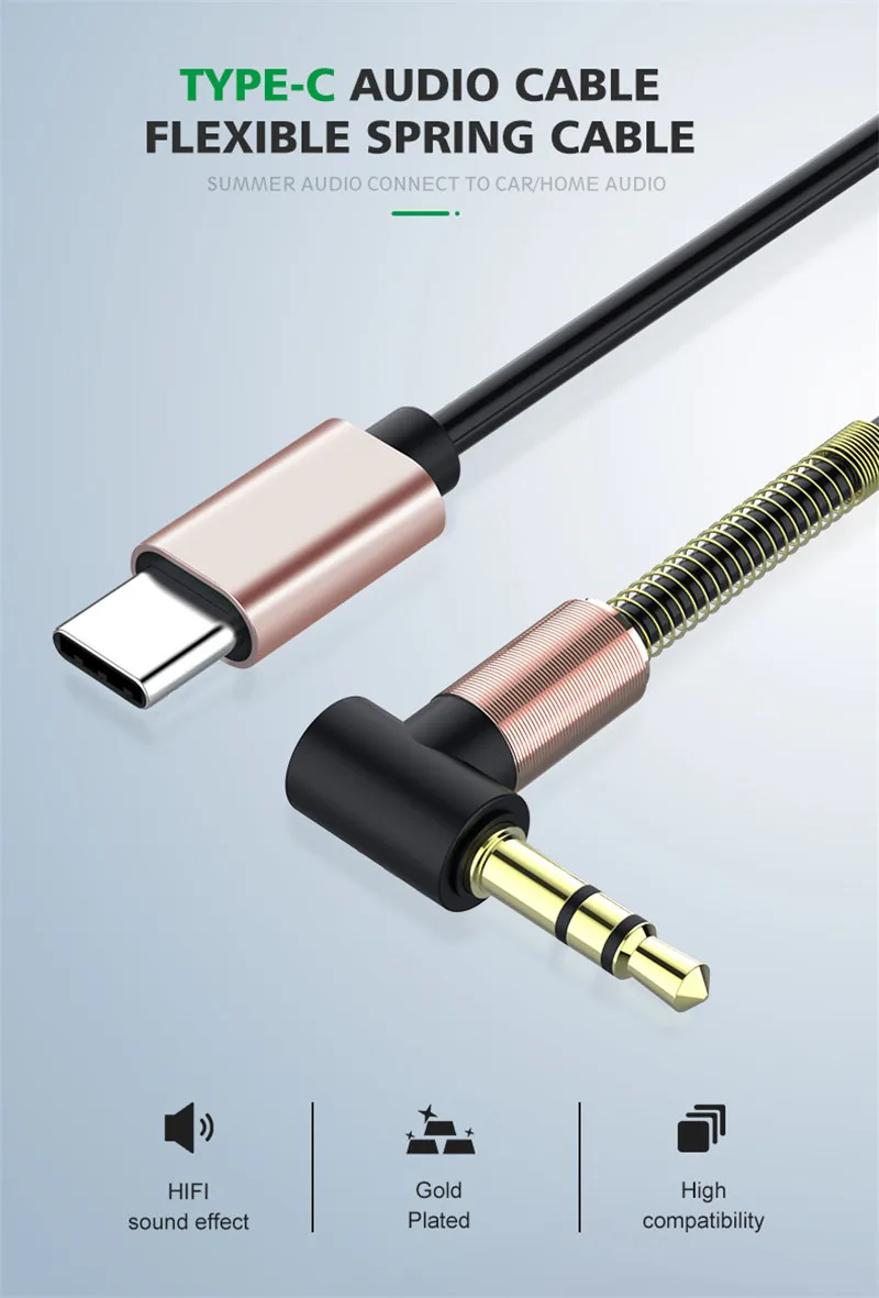 Adaptador de Cable de Audio auxiliar con conector USB tipo C a 3,5mm para auriculares, auriculares, altavoz, Cable auxiliar para coche, Cable convertidor tipo C de 1,5 M