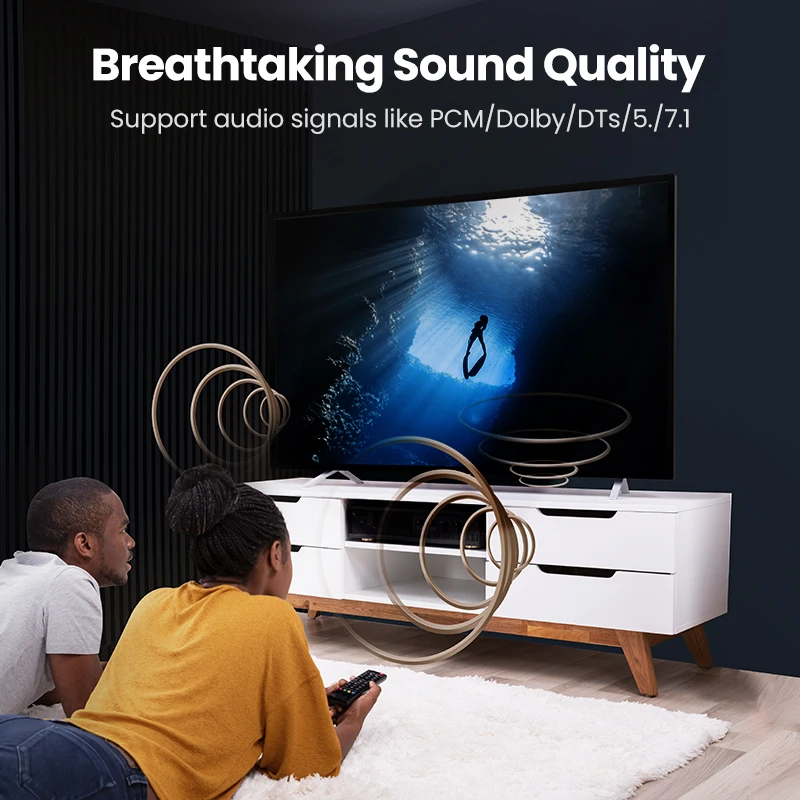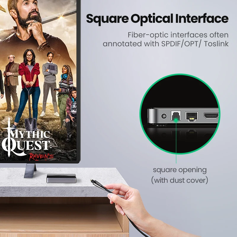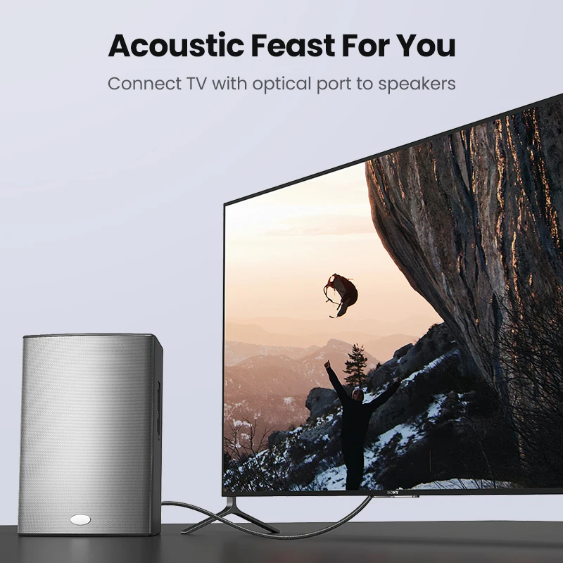 El cable de audio digital óptico Ugreen Toslink lleva un flujo de audio digital usando un cable de fibra óptica. Es perfecto para conectar dispositivos de audio, como reproductores de CD o DVD a un receptor o preamplificador. Proporciona un sonido limpio y preciso, sin distorsión ni interferencias de señal.