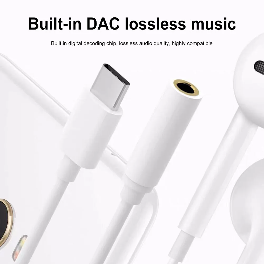 Cable de Audio tipo C de 3,5mm, adaptador auxiliar portátil tipo C a 3,5mm, convertidor de Cable de auricular de 10cm para teléfono inteligente Característica: 1. Adaptador de auriculares de 3,5mm a tipo C:Este adaptador está diseñado para convertir su puerto tipo C en un conector para auriculares de 3,5mm, lo que le permite usar sus auriculares favoritos con su teléfono u otros dispositivos tipo C. 2. Ligero y duradero:El adaptador de cable auxiliar de audio está hecho de material de aleación de aluminio ligero, lo que garantiza que sea fuerte, duradero y resistente al desgaste. 3. Puerto de audio chapado en oro:El puerto de audio de 3,5mm chapado en oro garantiza una conexión estable y fiable, evitando cualquier pérdida de señal o interferencia. 4. Compatibilidad versátil:El convertidor de cable de auriculares admite todos los auriculares de 3,5mm sin micrófono, así como auriculares de enchufe estándar de 3,5mm con micrófono y funciones de control remoto para responder/colgar llamadas, reproducir/Pausar/cambiar pistas de música, y más. 5. Amplia gama de aplicaciones:La versión analógica del adaptador es adecuada para teléfonos sin chip DAC incorporado y se puede utilizar con la mayoría de las principales marcas de teléfonos (no es compatible con teléfonos Samsung y Meizu). Por lo que es perfecto para escuchar música, ver televisión, hacer llamadas y usar comandos de voz. Especificación: Estructura del núcleo: Alambre de núcleo de cobre Estilo: simulado Longitud del cable: 10cm/3,93 pulgadas Material: aleación de aluminio Color: blanco, negro (opcional) Tipo de interfaz: tipo-c a 3,5mm Compatibilidad: adecuado para teléfonos con interfaz tipo C Peso: 8g Nota: