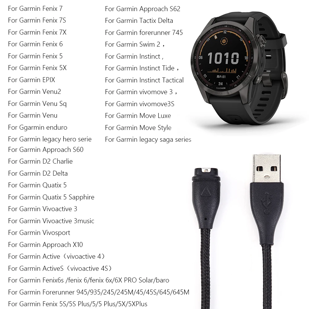 Cable de carga de 50/100cm, accesorios para reloj inteligente, línea de carga USB trenzada de nailon, piezas de repuesto, portátil para Garmin Fenix 6 5 5X