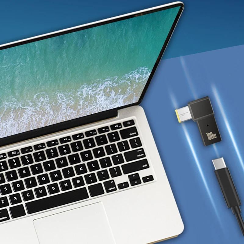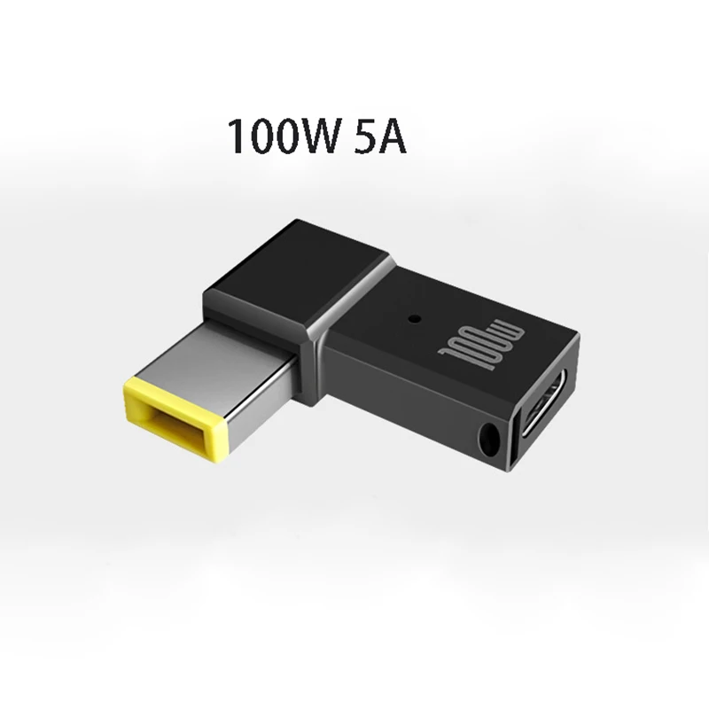 Para Lenovo Thinkpad Laptop PD cargador 100W 20V adaptador de codo macho 1145 cuadrado a hembra tipo C extender enchufe Notebook convertidor de Cable de carga rápida