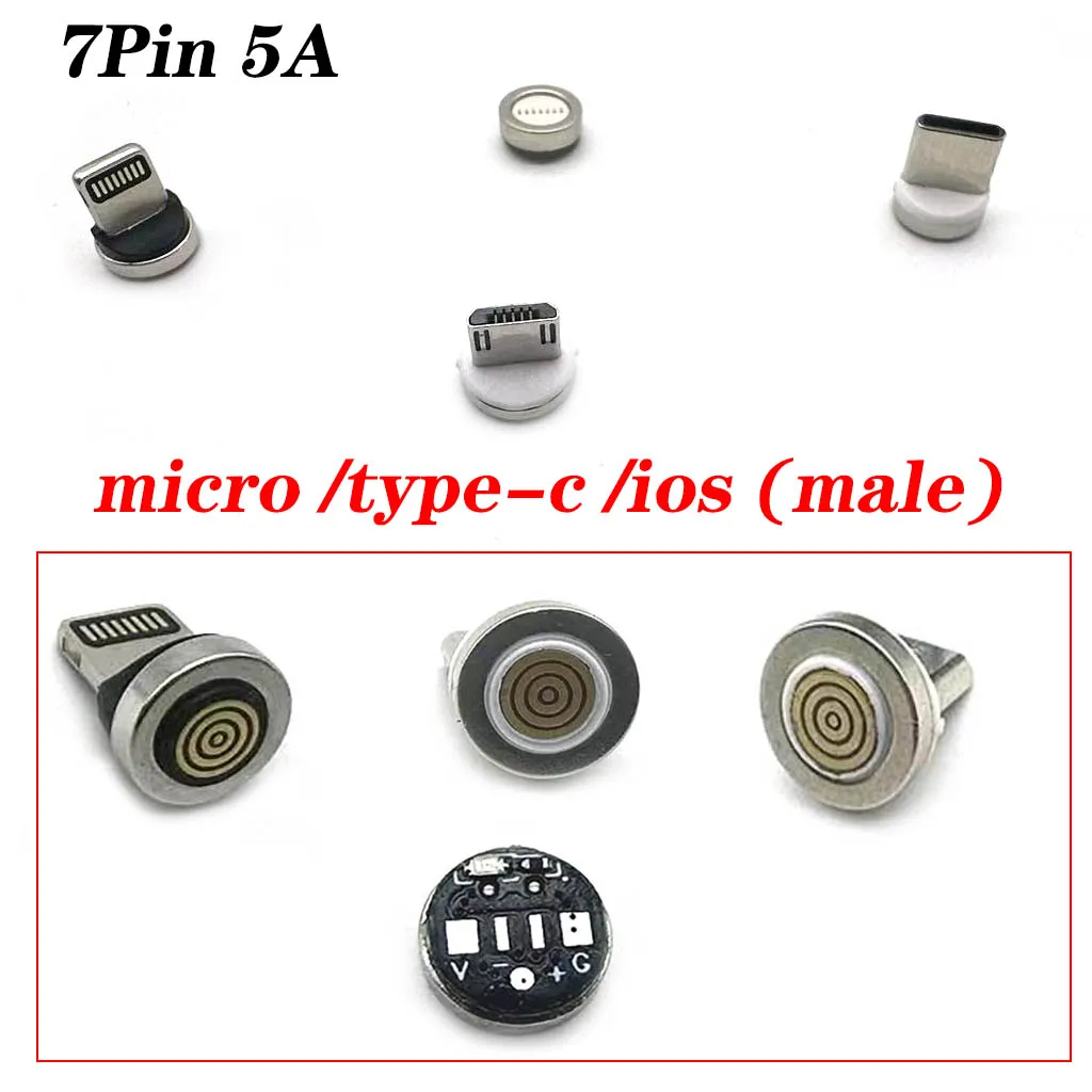 Adaptador de Cable de carga magnética, Conector de puntas para teléfono móvil tipo C, Micro USB, 5A, carga rápida, enchufe magnético de 7 pines, 1 piezas