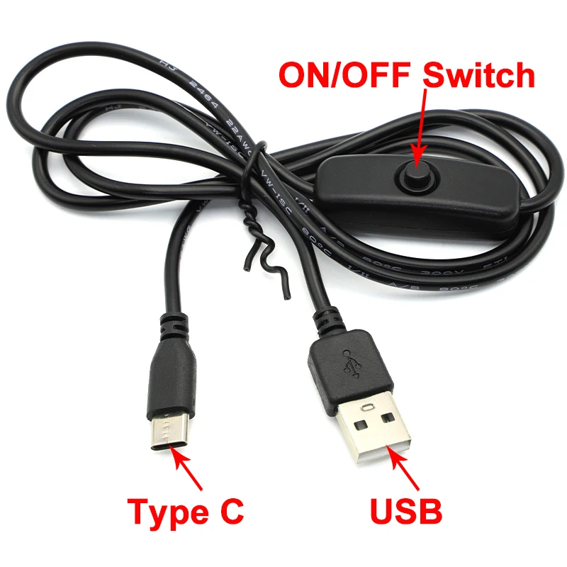 Comprar Adaptador de Cable de carga USB tipo C 5V 3A de 1M para Cable de alimentación Raspberry Pi 4 con interruptor de encendido/apagado para ordenador RPI 4 Modelo B RPI 4B