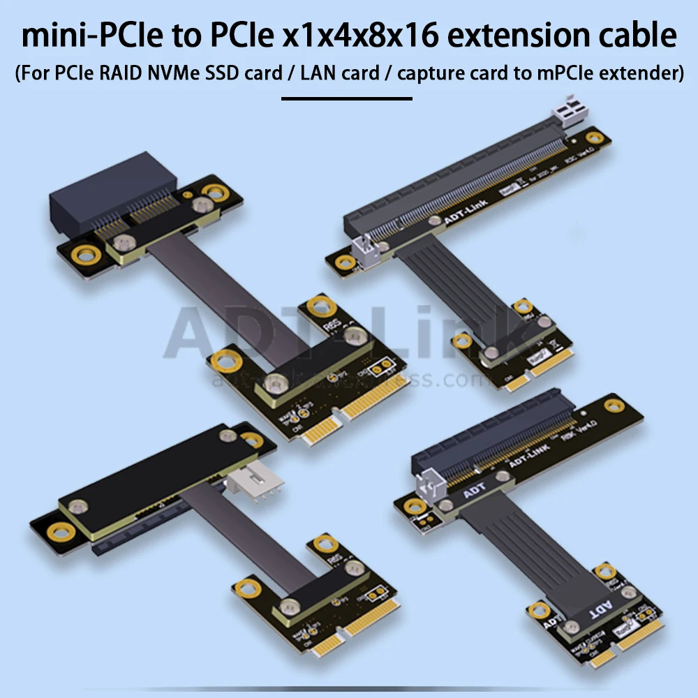 Comprar Adaptador de Cable de cinta, elevador Mini PCIe a PCI-E 4,0, 1X, 4X, 8X, 16X, PCIe a PCI Express x8, alimentación 4P para extensor de probador PCIE, nuevo