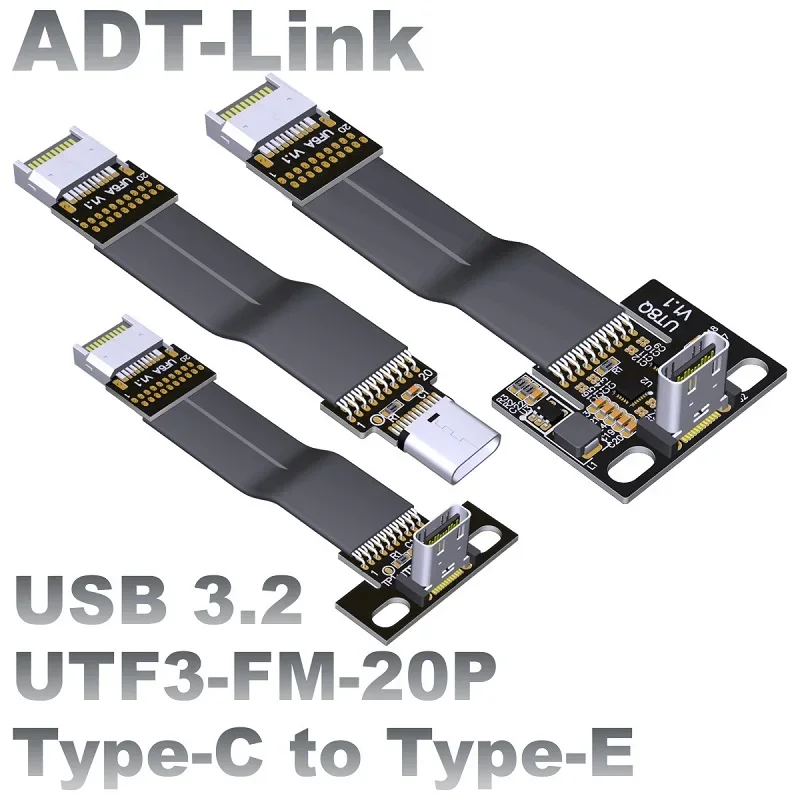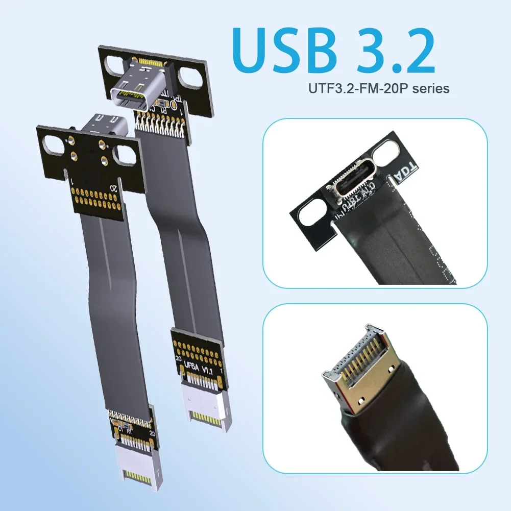 Comprar Adaptador de Cable de cinta plana blindado, placa base alargadora A4, 20G, USB interno 3,2 Gen2x2 tipo C hembra a tipo E 19/20P macho, ITX/ATX