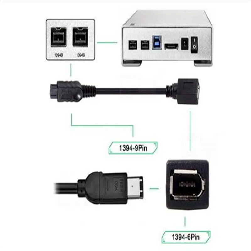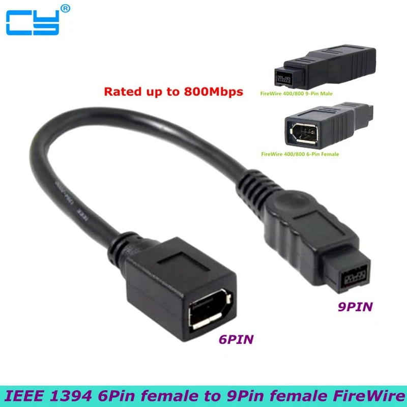 Comprar Adaptador de Cable para conectar a una cámara Digital de ordenador, 20cm, negro, IEEE 1394, 6 pines hembra a 1394b, 9 pines hembra FireWire 400 a 800