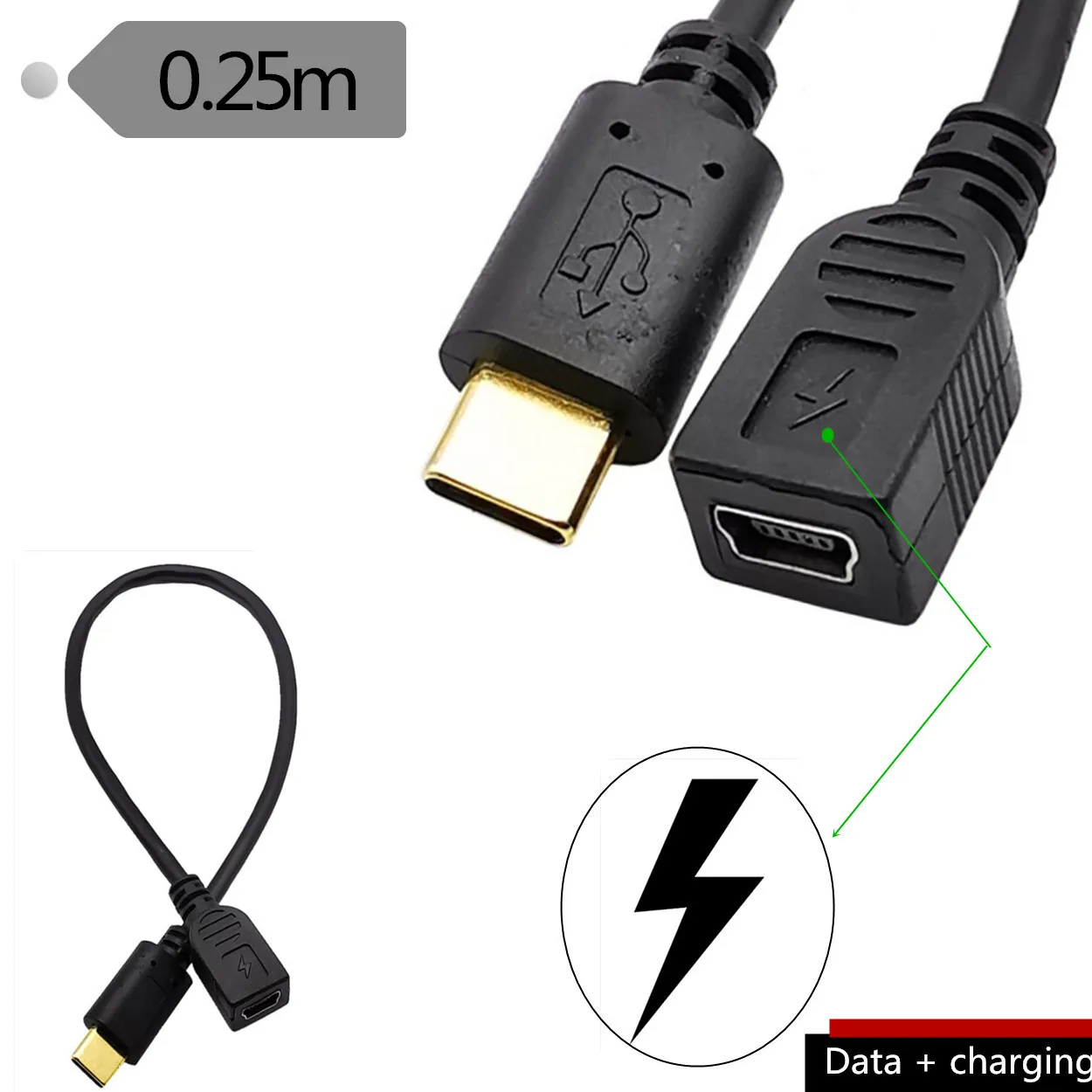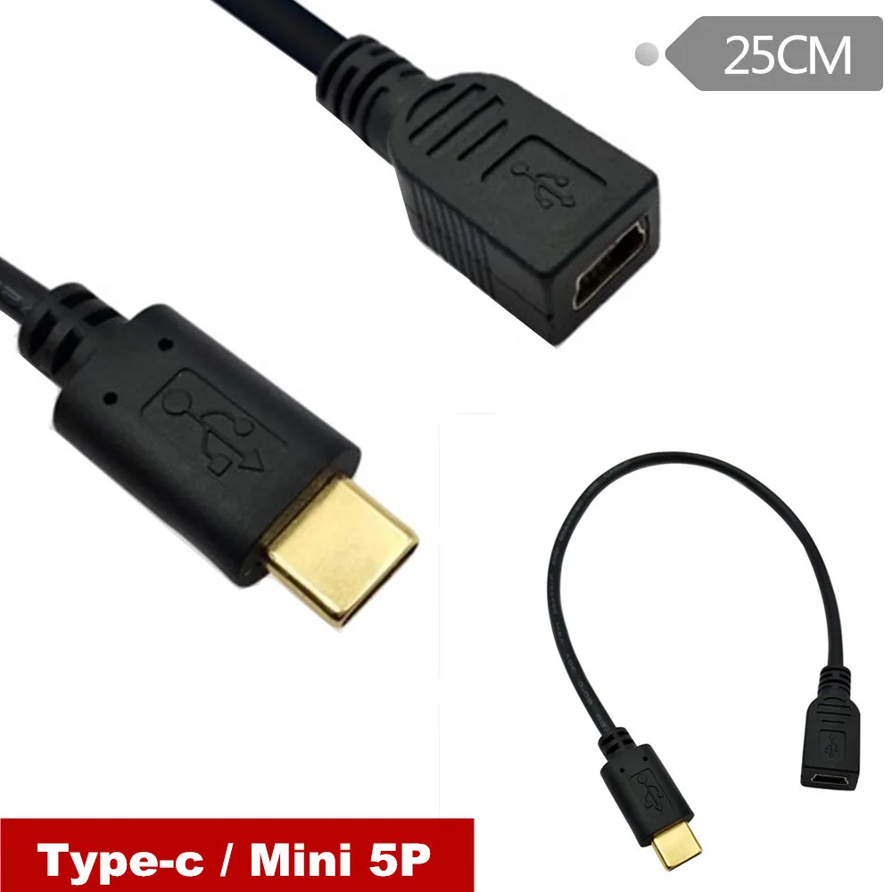 Chapado en oro tipo C macho a mini 5pin hembra/micro 5pin hembra teléfono móvil adaptador de cable de conversión de datos USB 3,1 cable de datos