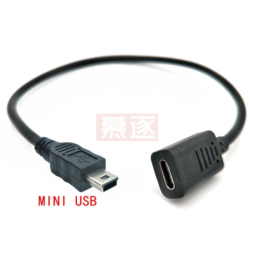 30cm Mini USB Macho a Tipo-c Hembra Adaptador de datos de carga Cable Adaptador de cable
