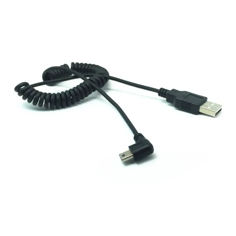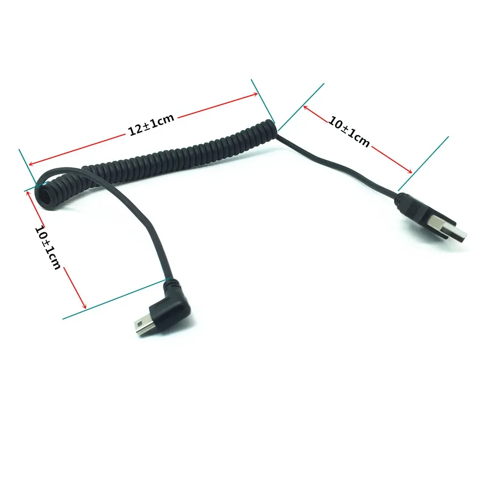 100% nuevo y de alta calidad Ángulo recto 90 grados USB 2.0 A macho a ángulo recto Mini B 5p macho Cable de resorte Color: Negro Longitud: 27 cm-120 cm Cantidad: 1 ud.