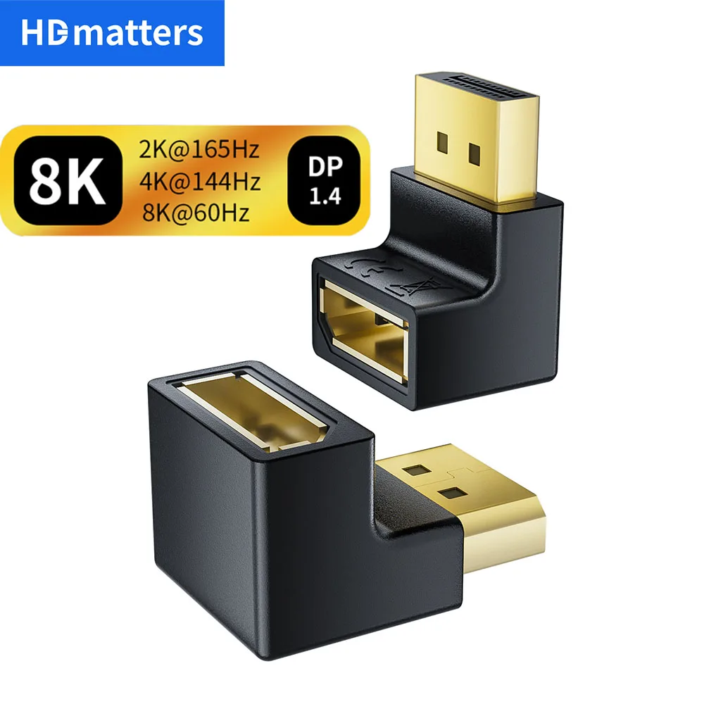 Comprar Adaptador de cable DisplayPort de 90 grados ángulo derecho izquierdo convertidor adaptador Displayport adaptador DisplayPort 1,4 adaptador 4K 144Hz DP