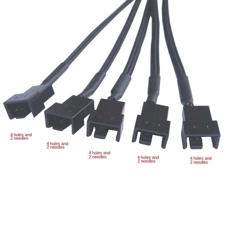 Nombre del producto: ventilador grande de 4 pines a 4 pines, cable de extensión de cinco puntos [esta interfaz es compatible con 3 pines] Longitud del producto: 27cm Tipo de cable: 1007 24AWG Material del aislamiento: aislamiento de PVC Especificación del Conductor: 11 * 0.12TS Material del Conductor: cobre estañado Diámetro exterior del cable: od1.4 mm Temperatura nominal: 80 ℃ Voltaje del producto: 12V Color del cable]: Negro Peso del producto: 20 gramos Interfaz del producto: un extremo de la fuente de alimentación es un conector tipo D de 4 pines, y los otros cinco extremos son la interfaz del ventilador de 4 pines Función del producto: haga que el ventilador de la CPU de la placa base del ordenador use la gran interfaz de 4 pines para suministrar energía