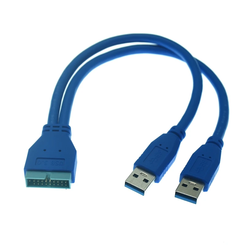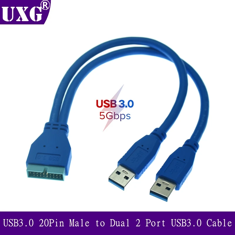 Dual 2 puertos USB3.0 USB 3,0 A macho a placa base adaptador de Cable de 20 pines Cable de extensión USB de 20 pines