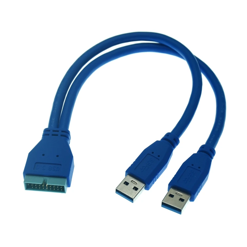 Comprar Adaptador de Cable de doble puerto USB 3,0, 3,0 A, macho A placa base, 20 pines, 19 pines, 25CM, 50CM