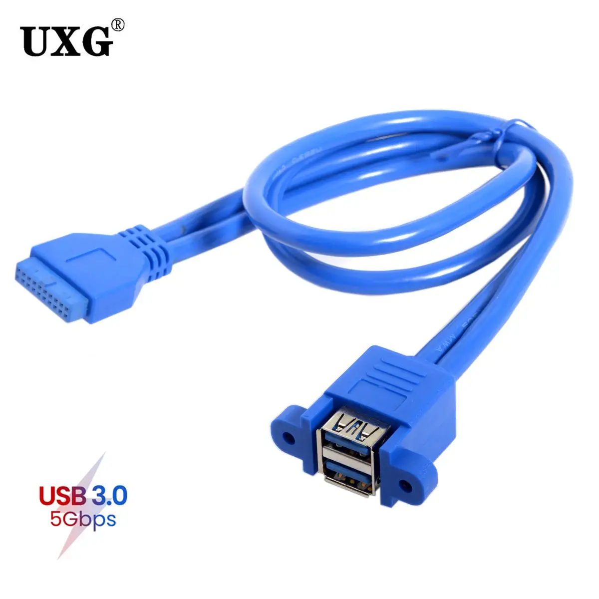 Comprar Adaptador de Cable doble USB 3,0 A hembra, 2 puertos A Usb 3,0, 20 pines, 19 pines, para placa base, con agujero de tornillo de 50cm
