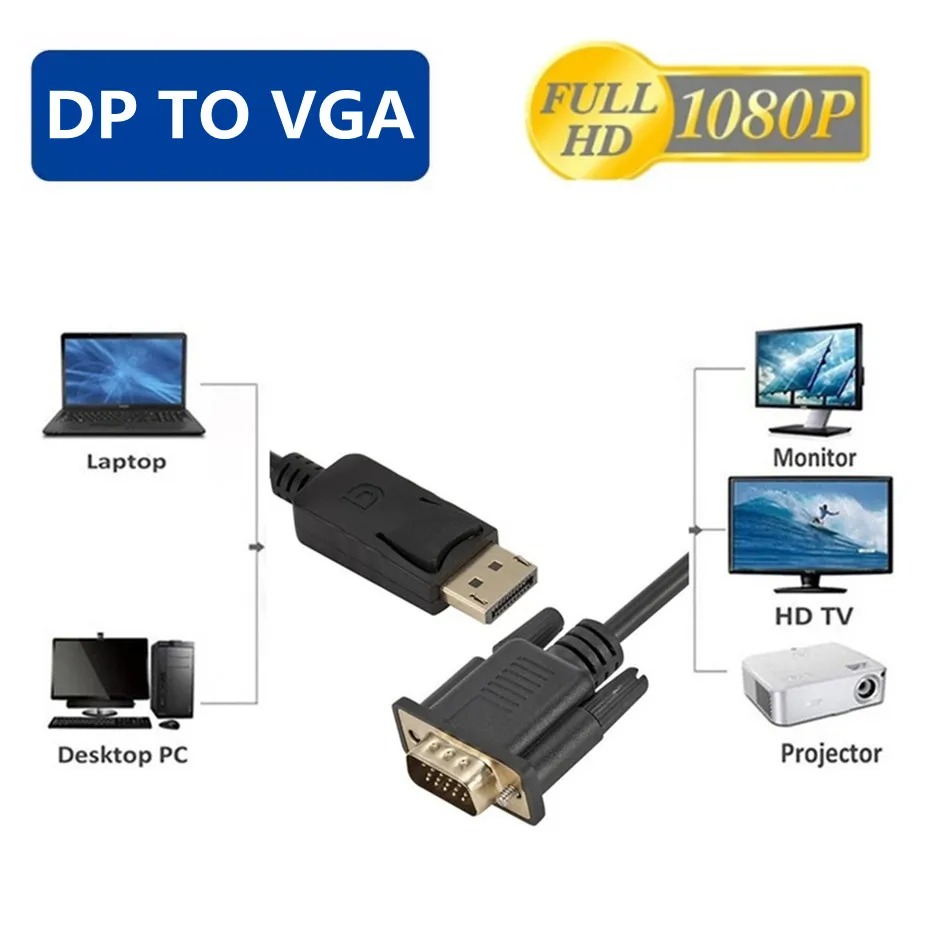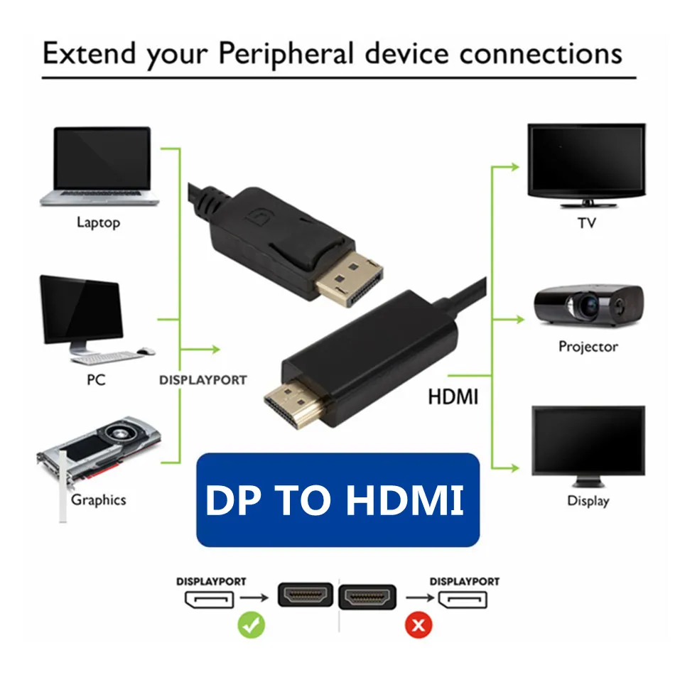 Comprar Adaptador de cable DP a HDMI de 1080P y 1,8 M, adaptador de cable DP a VGA, adaptador DP a DVI, adaptador de cable DP a DP para PC, portátil, proyector HD
