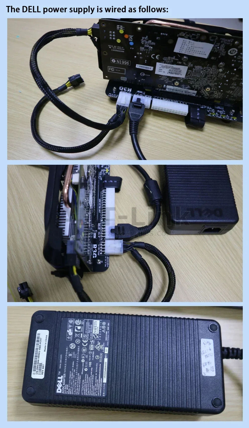 Descripción de la fuente de alimentación: fuente de alimentación compatible con la serie DELL DA-2 (D220P-01/ADP- 220AB) Fuente de alimentación de 12 V/18 A/220 W, o fuente de alimentación ATX estándar de 500 W o más, la potencia debe ser preparada por el comprador