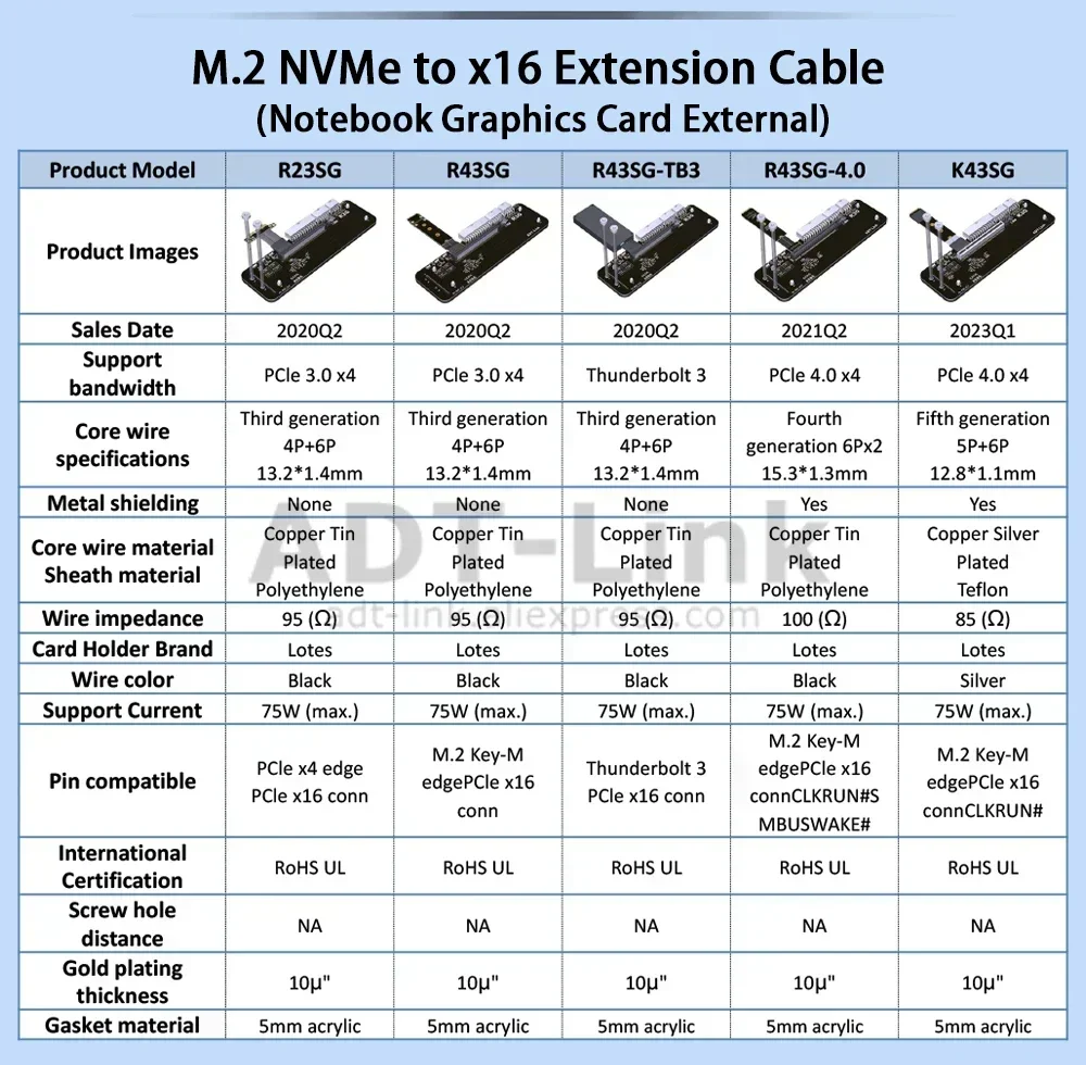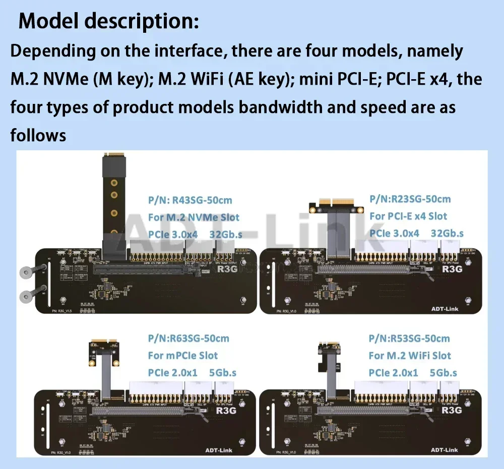 Comprar Adaptador de Cable de extensión ADT R23SG eGPU PCIe x16 a PCI-E x4, Cable elevador PCI Express 16x para tarjeta gráfica externa de escritorio, 50CM